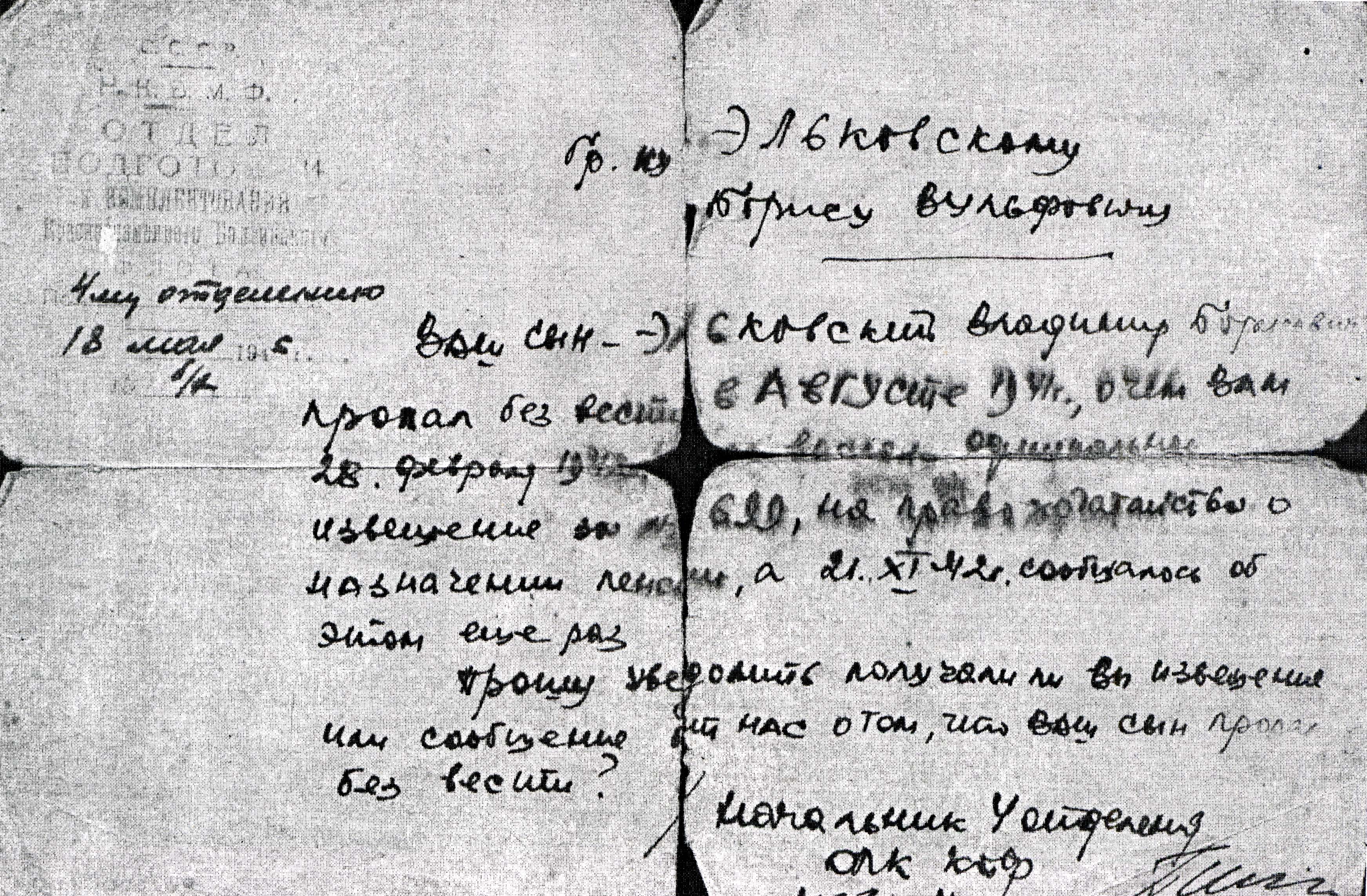 Elkovski Vladimir 1920 Kronshtadt, Russland (UdSSR) Gedenkblatt