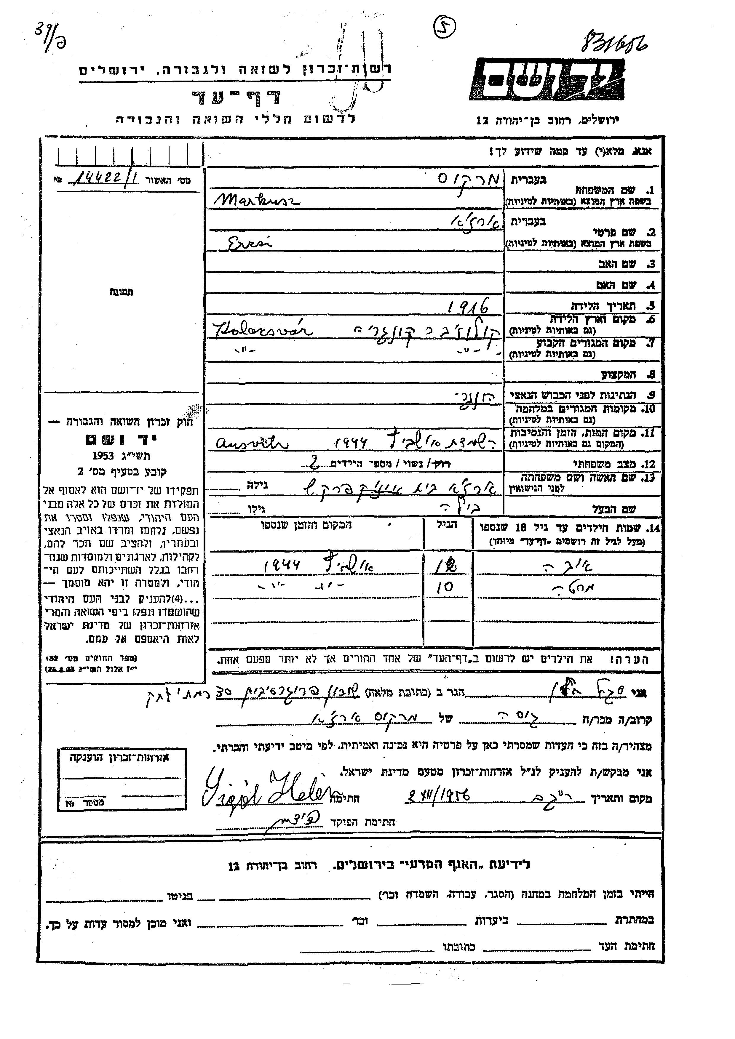 Markusz | Iva | Kolozsvar, Rumänien | Gedenkblatt | |