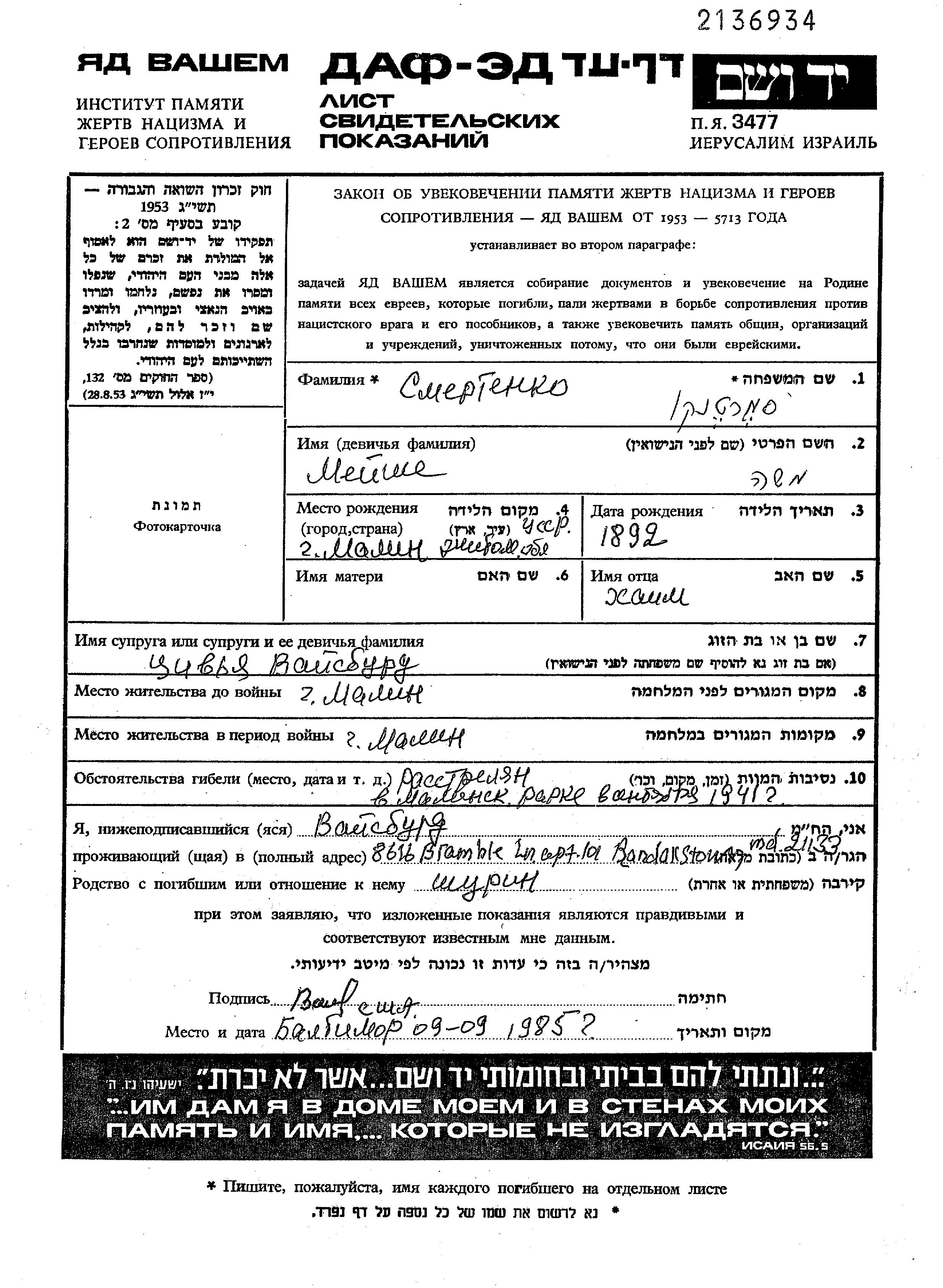Juden wurden in der Schoah auf verschiedenste Weisen ermordet, unter anderem: Vergasen, Erschiessen, lebendig verbrannt werden, lebendig begraben werden, Tod durch Erschöpfung durch Zwangsarbeit, Epidemien, mangels jeder hygienischer Bedingung oder dem Fehlen medizinischer Versorgung. Manche Juden nahmen sich das Leben, um der Festnahme und weiterer Verfolgung zu entgehen oder ihr hoffnungsloses, nicht nachlassendes Leiden zu beenden.