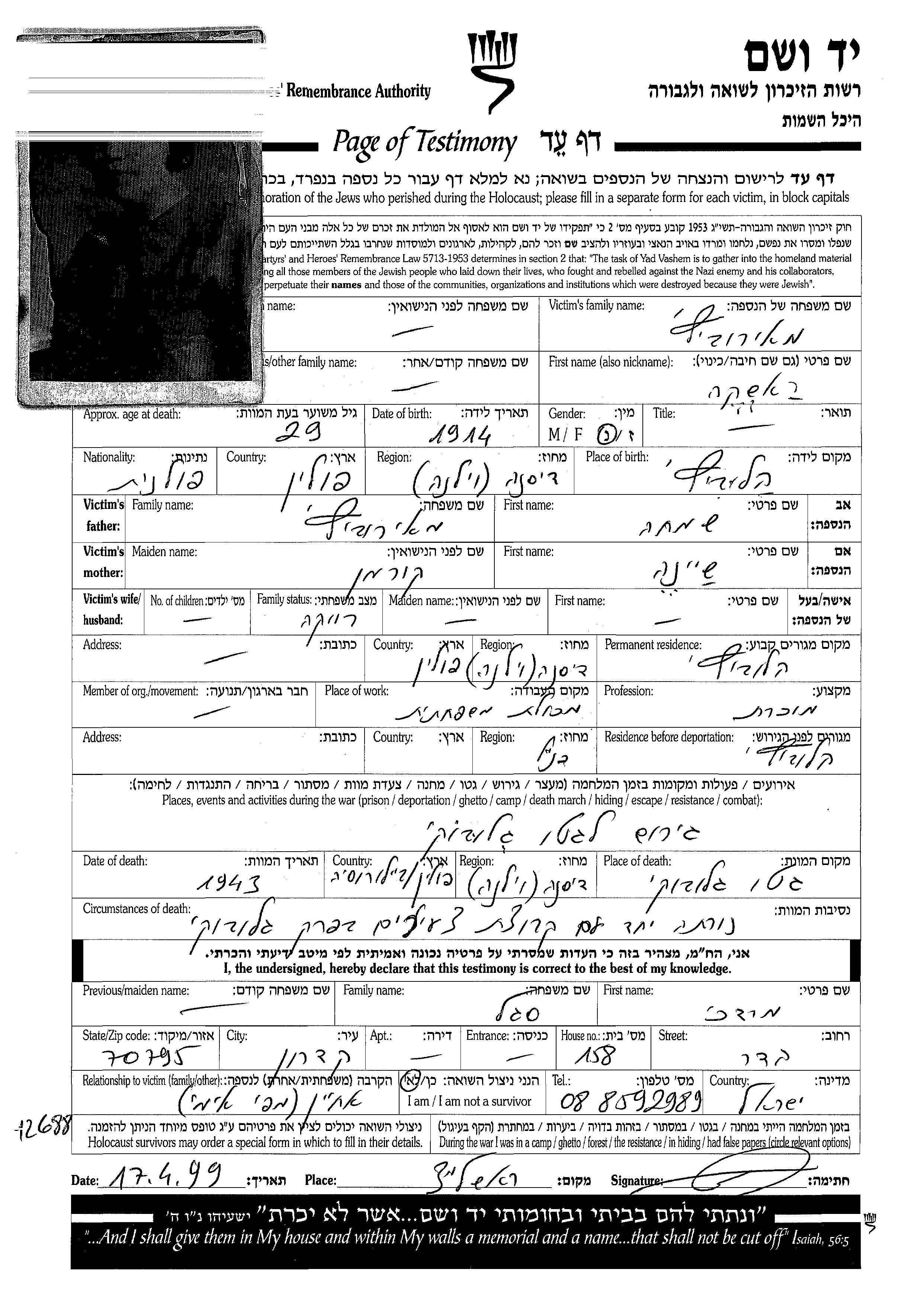 Meirovitz | Rashka | 1914 | Holubicze, Polen | Gedenkblatt |