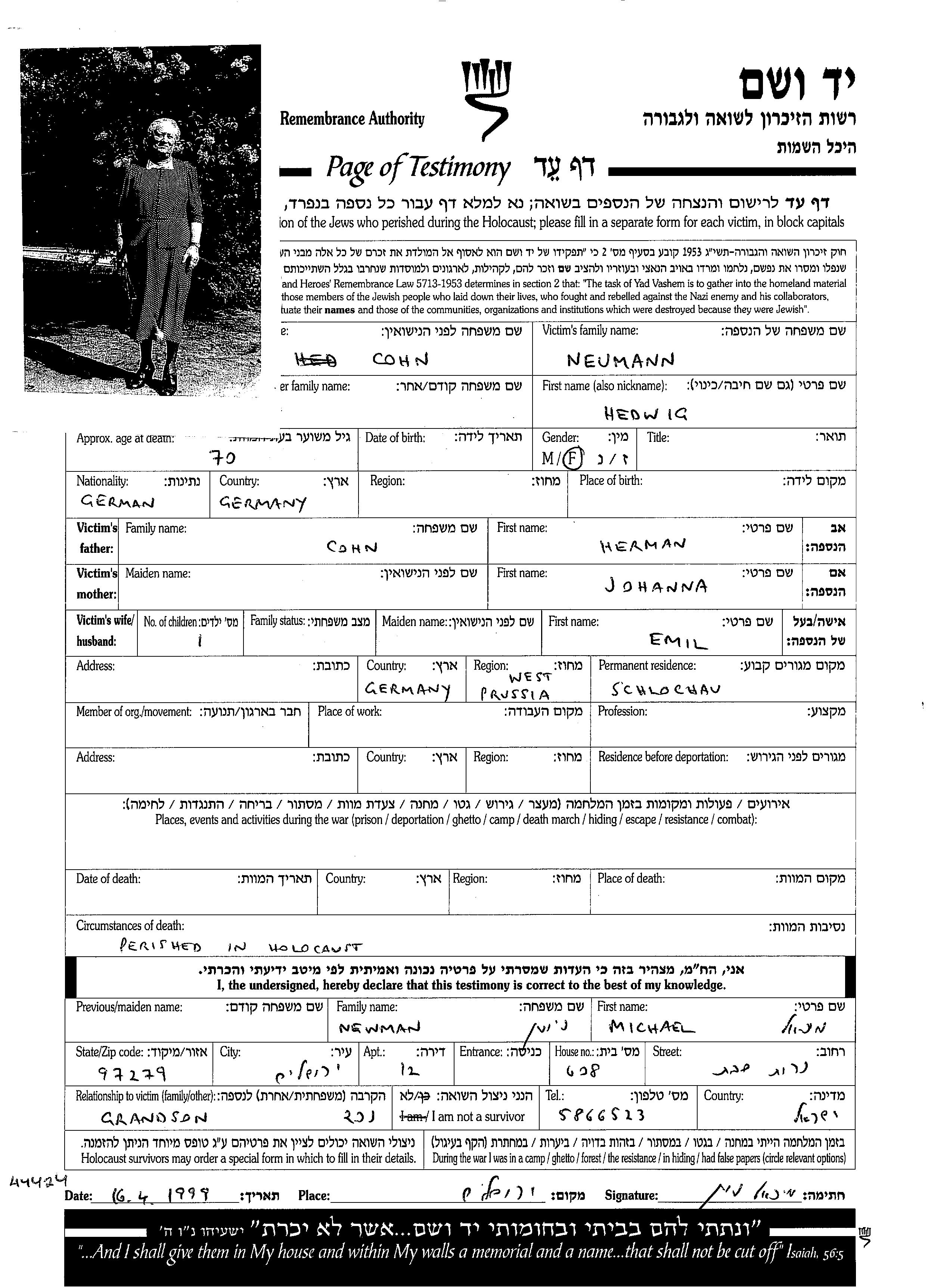 Neumann | Hedwig | Schlochau, Deutsches Reich | Gedenkblatt | |