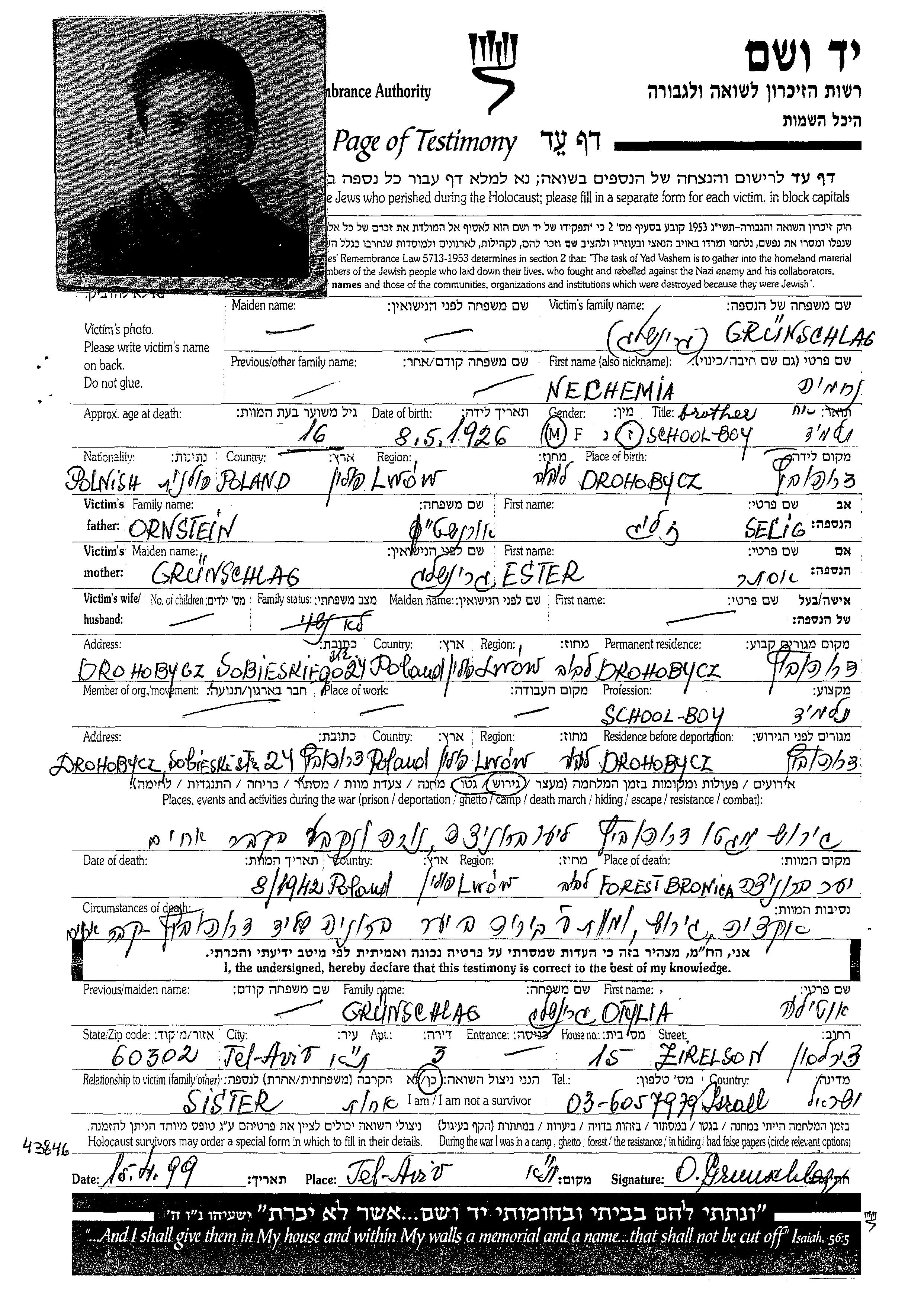 Grunschlag | Nechemia | 1926 | Drohobycz, Polen | Photos |