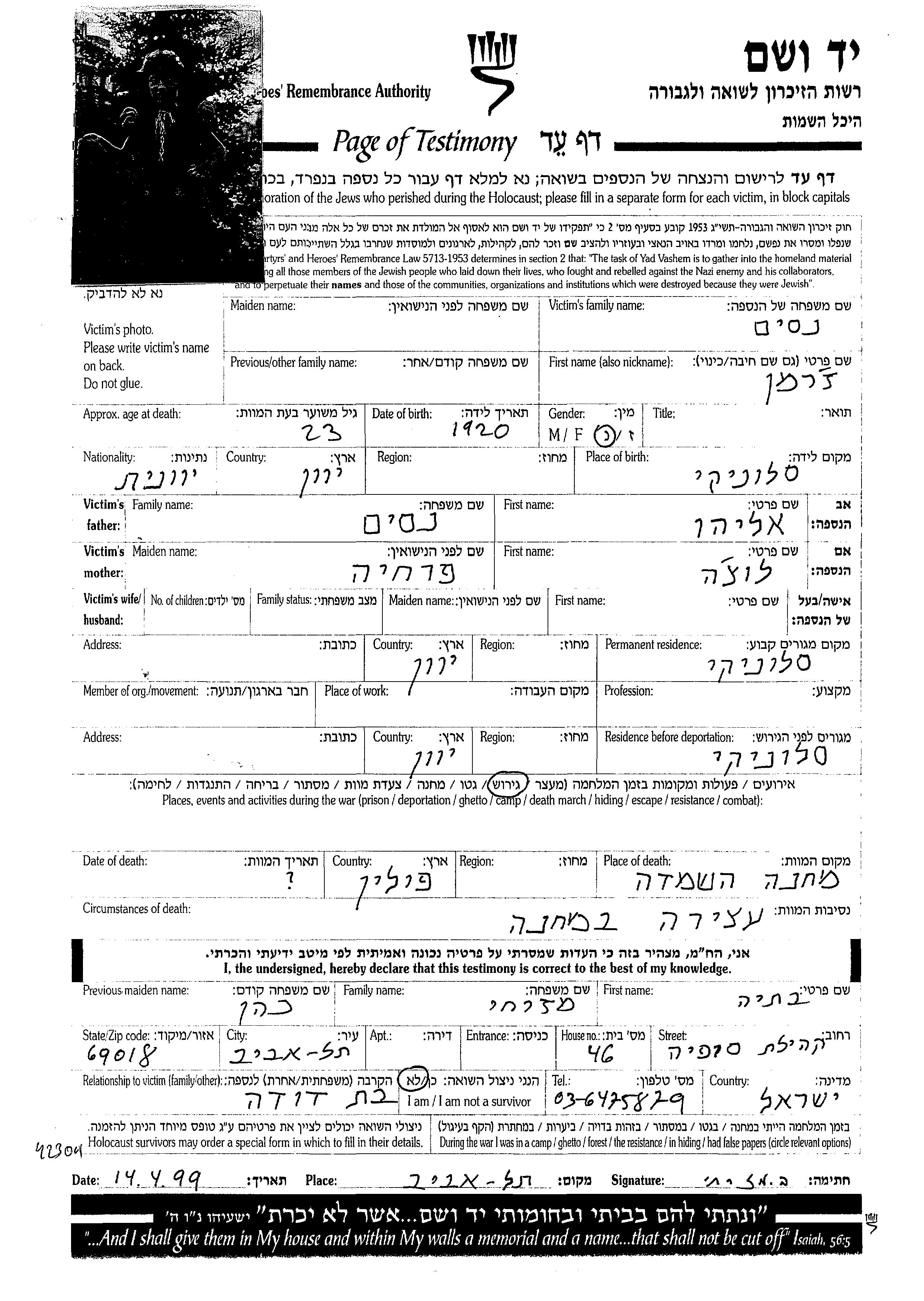 Zhermen wurde in der Schoah ermordet. Todesort: Lager, Polen.