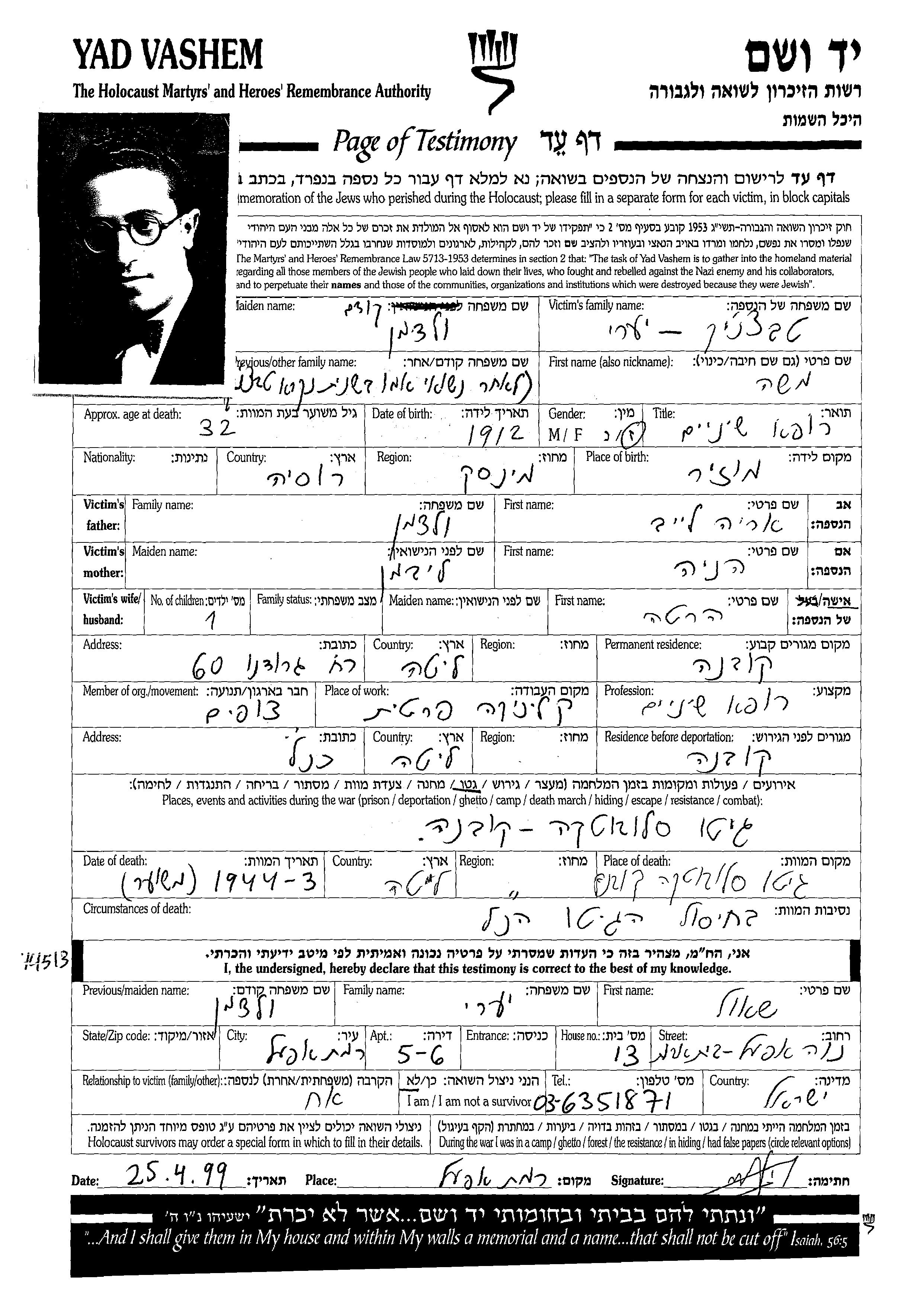 Suche nach einem Todesjahr im Zeitraum der Holocaust: 1933 bis 1945. Bitte wählen Sie 'Exakt' im Auswahlmenü, um nur nach einem einzelnen Jahr zu suchen, alternativ können Sie die flexibleren Optionen '+/- 2 Jahre' oder '+/- 5 Jahre' wählen.