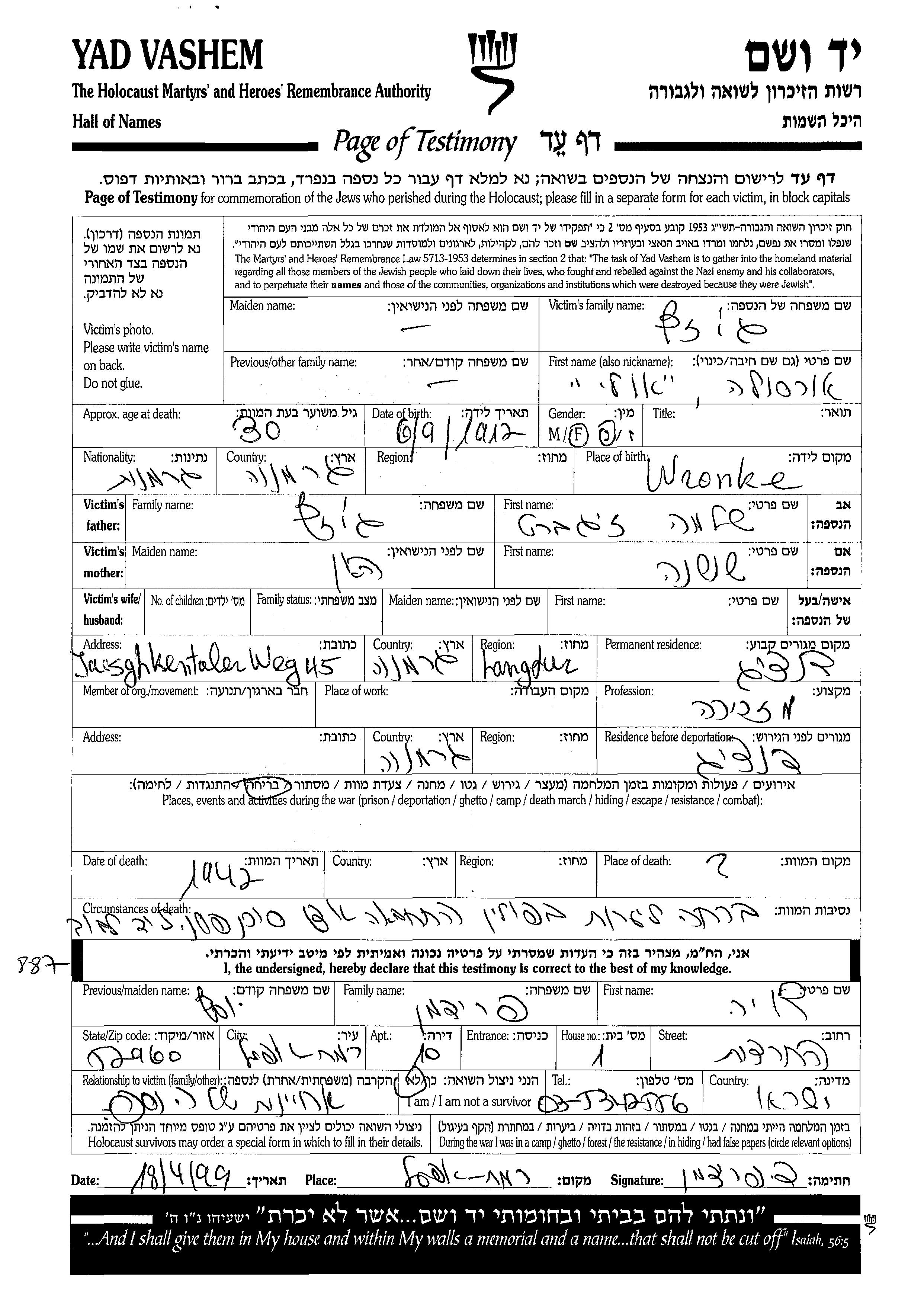 Ursula Oli Iosef wurde im Jahr 1912 in Wronki, Polen geboren. Sie war Sekretärin. Vor dem Zweiten Weltkrieg lebte sie in Danzig, Freie Stadt Danzig.