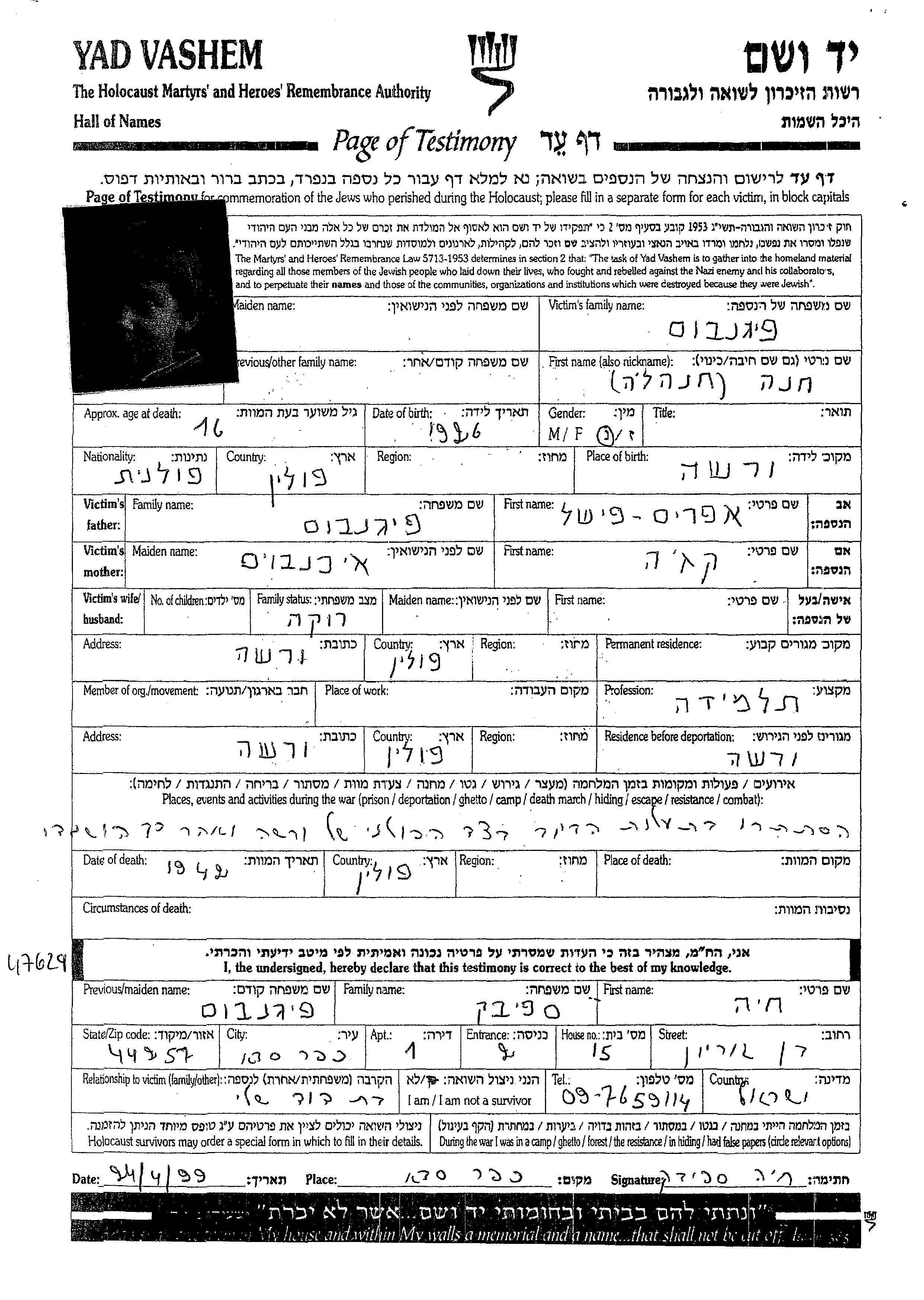 Khana wurde in der Schoah ermordet. Todesort: Polen im Jahr 1942.