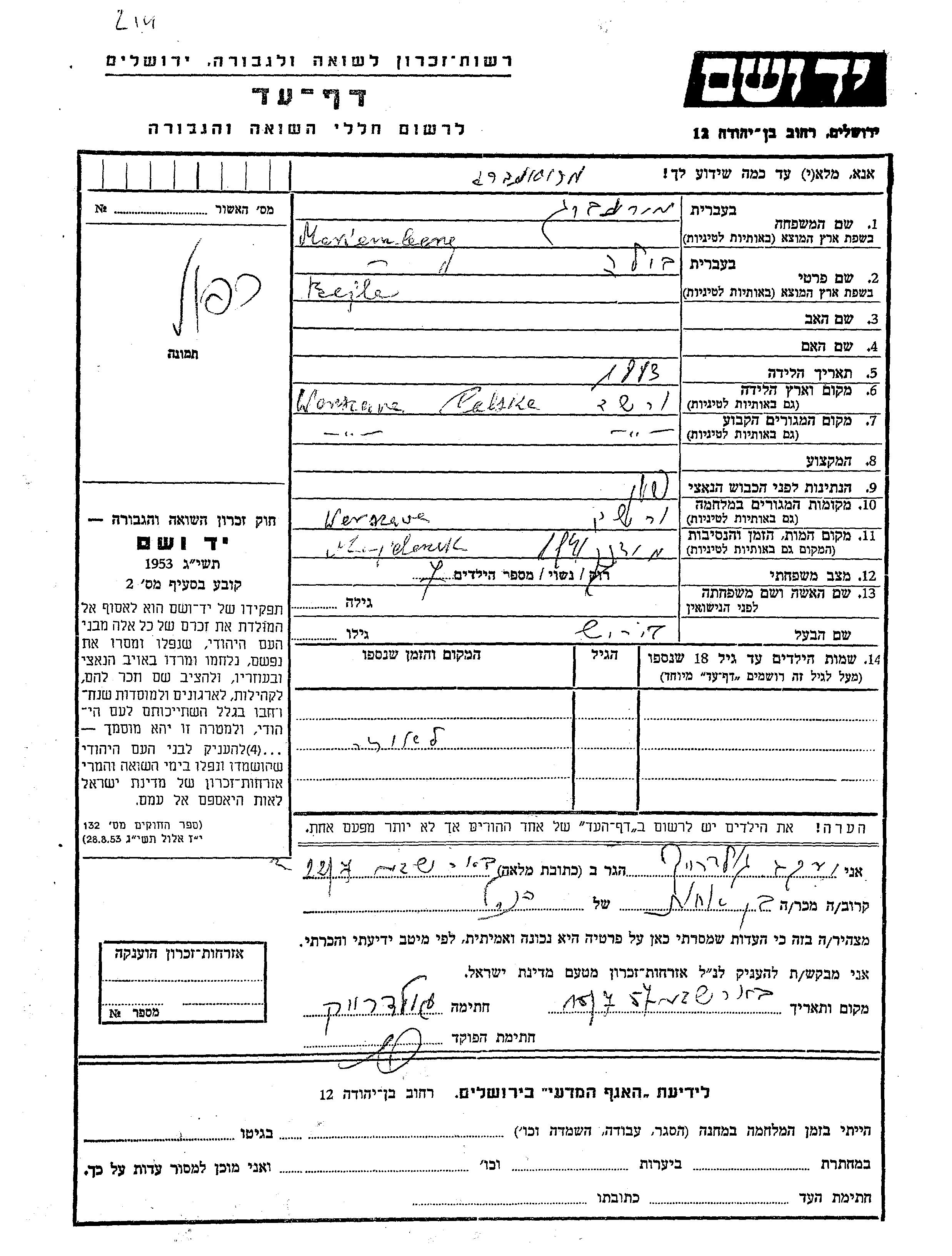 Bejla Mariemberg Mirenberg wurde im Jahr 1883 in Warszawa, Polen geboren. Sie war mit Ber Verheiratet. Vor dem Zweiten Weltkrieg lebte sie in Warszawa, Polen. Während des Krieges war sie in Warszawa, Polen.