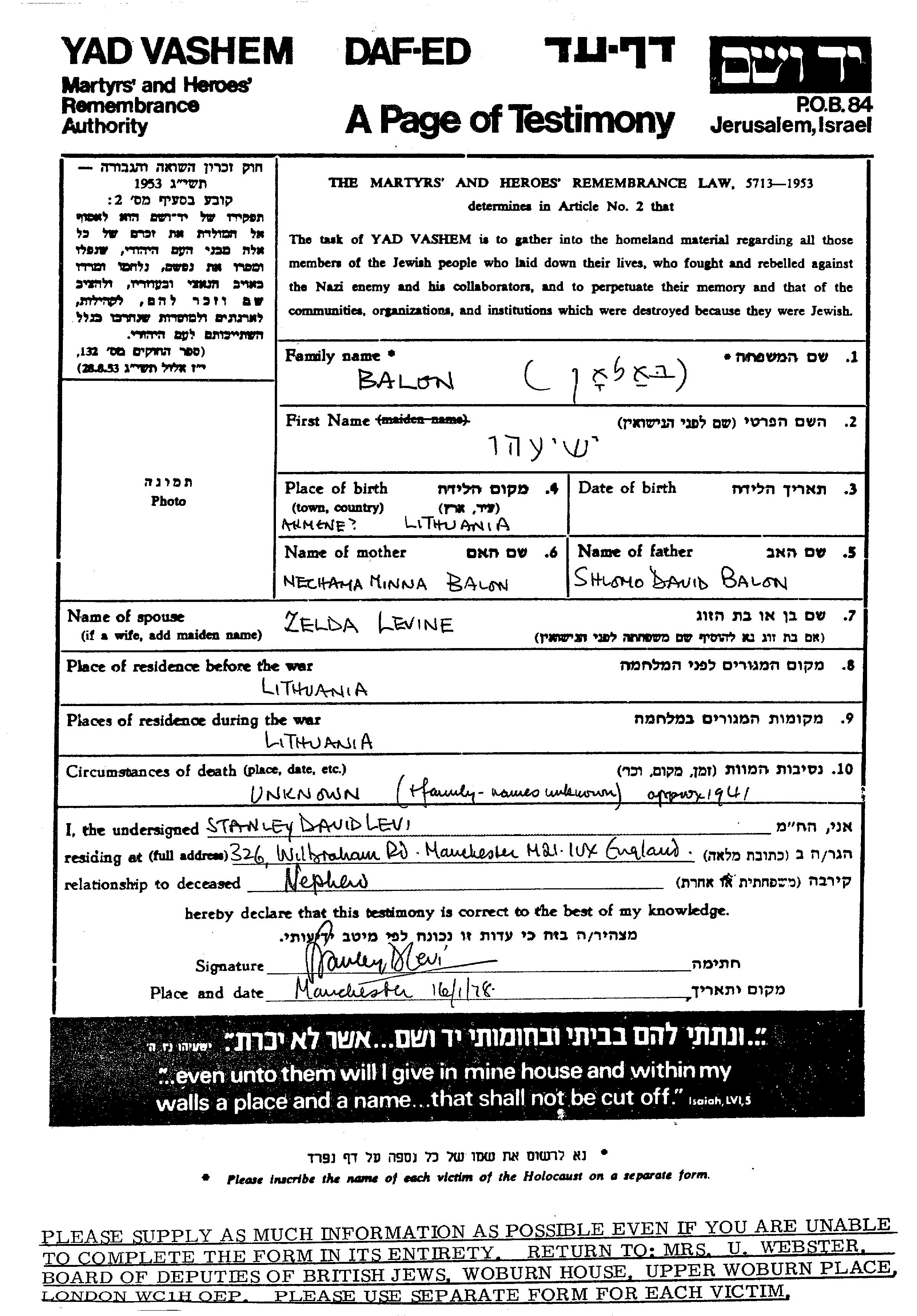 Balan Balon Ishiyahu Litauen Gedenkblatt