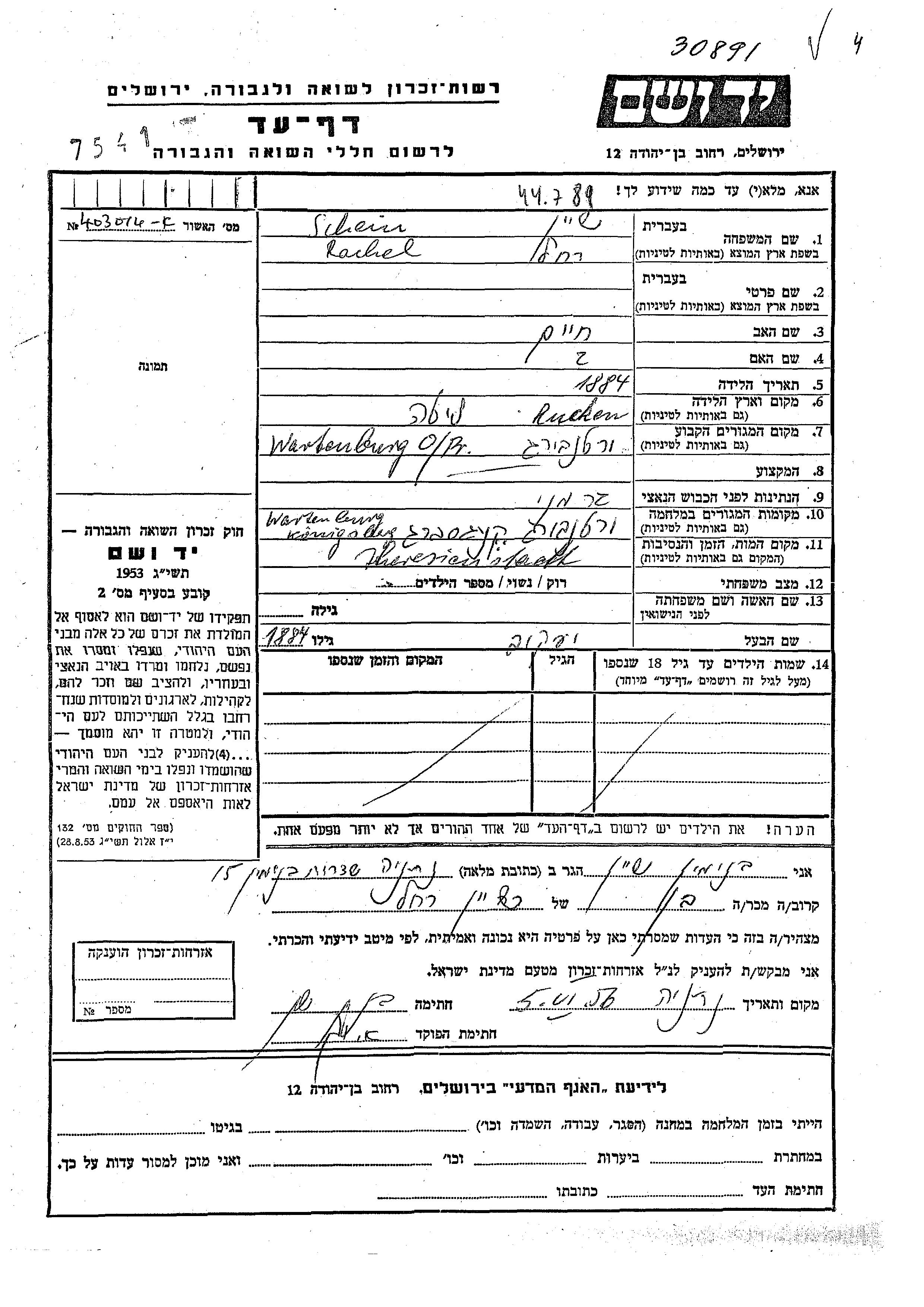 Rachel wurde in der Schoah ermordet. Todesort: Theresienstadt, Tschechoslowakei.