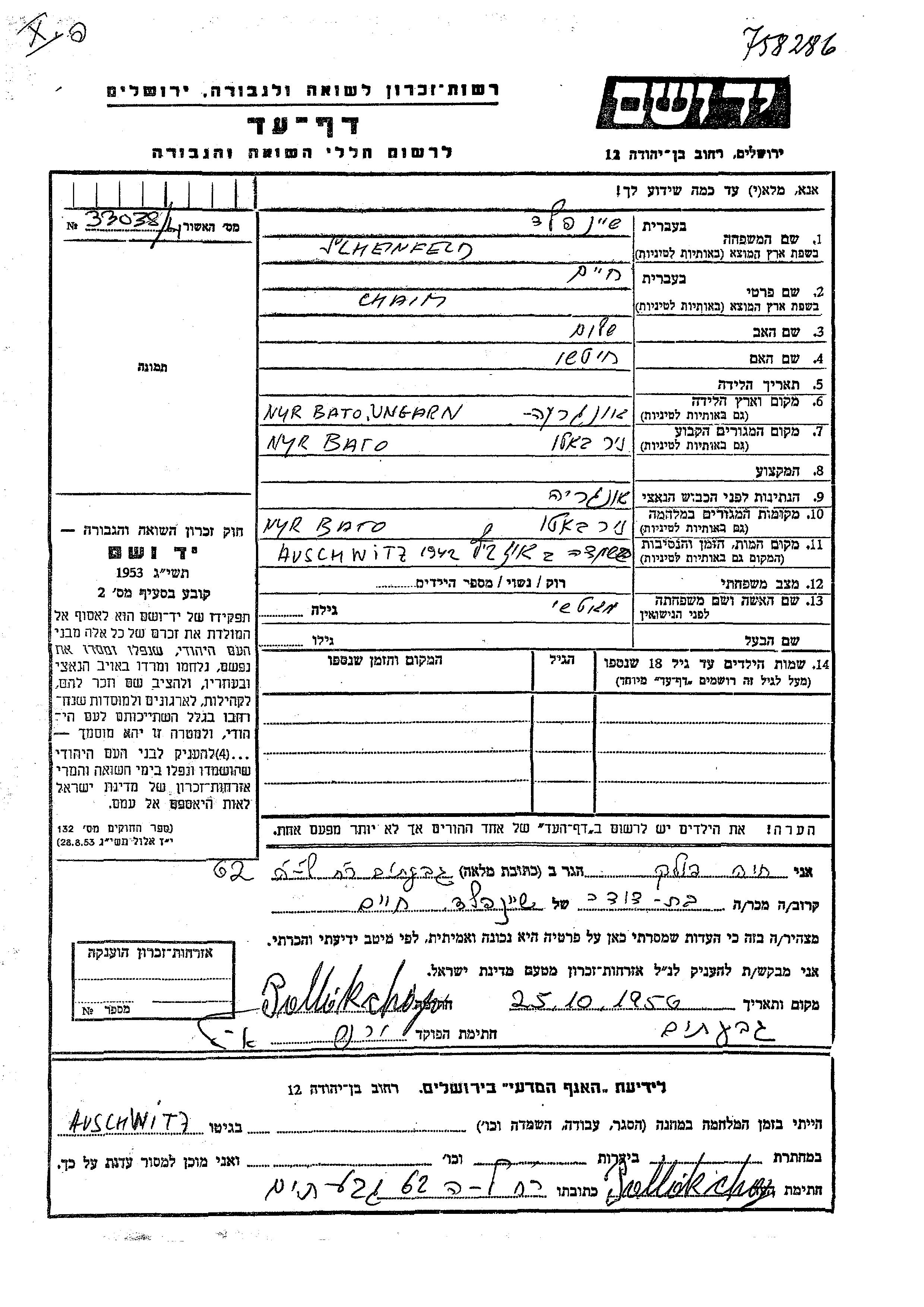 Chaim wurde in der Schoah ermordet. Todesort: Auschwitz, Polen im Jahr 1942.