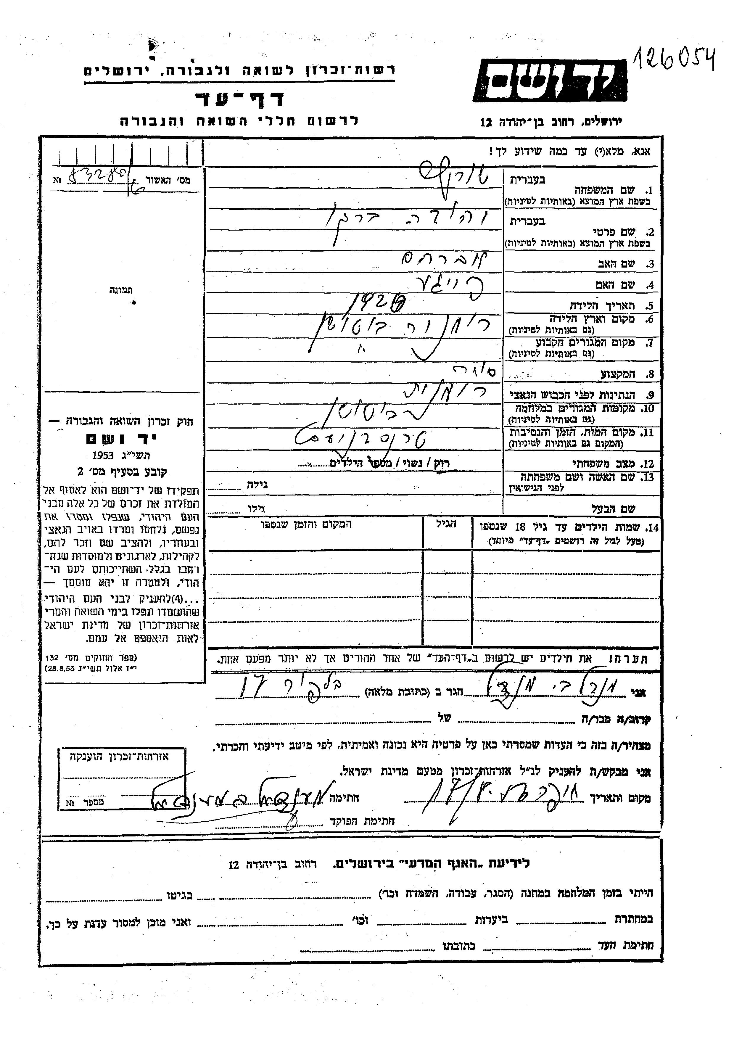 Shvartz Yehuda Berko 1920 Botosani, Rumänien Gedenkblatt