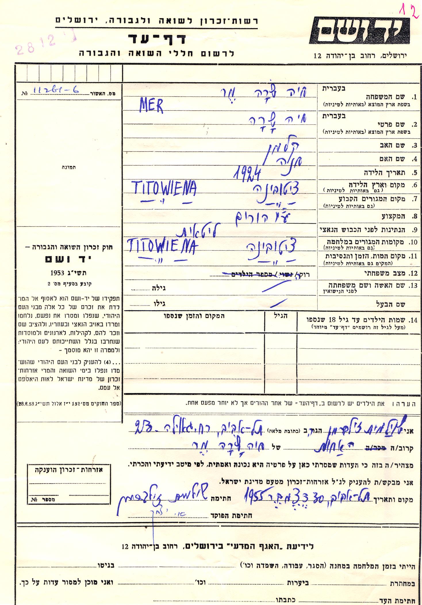 Yad Vashem - Gedenkblätter Sammlung
