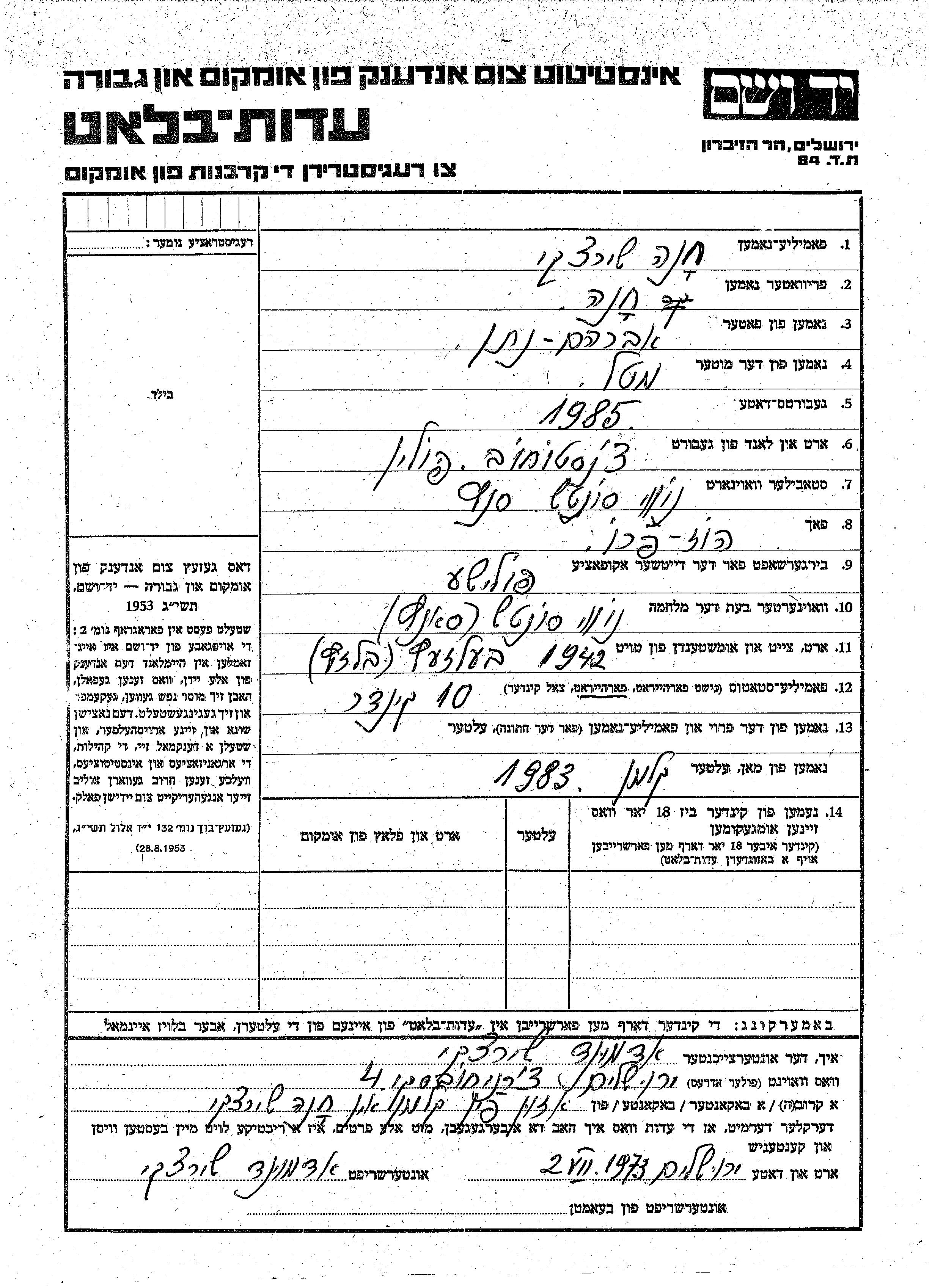 Yad Vashem - Gedenkblätter Sammlung