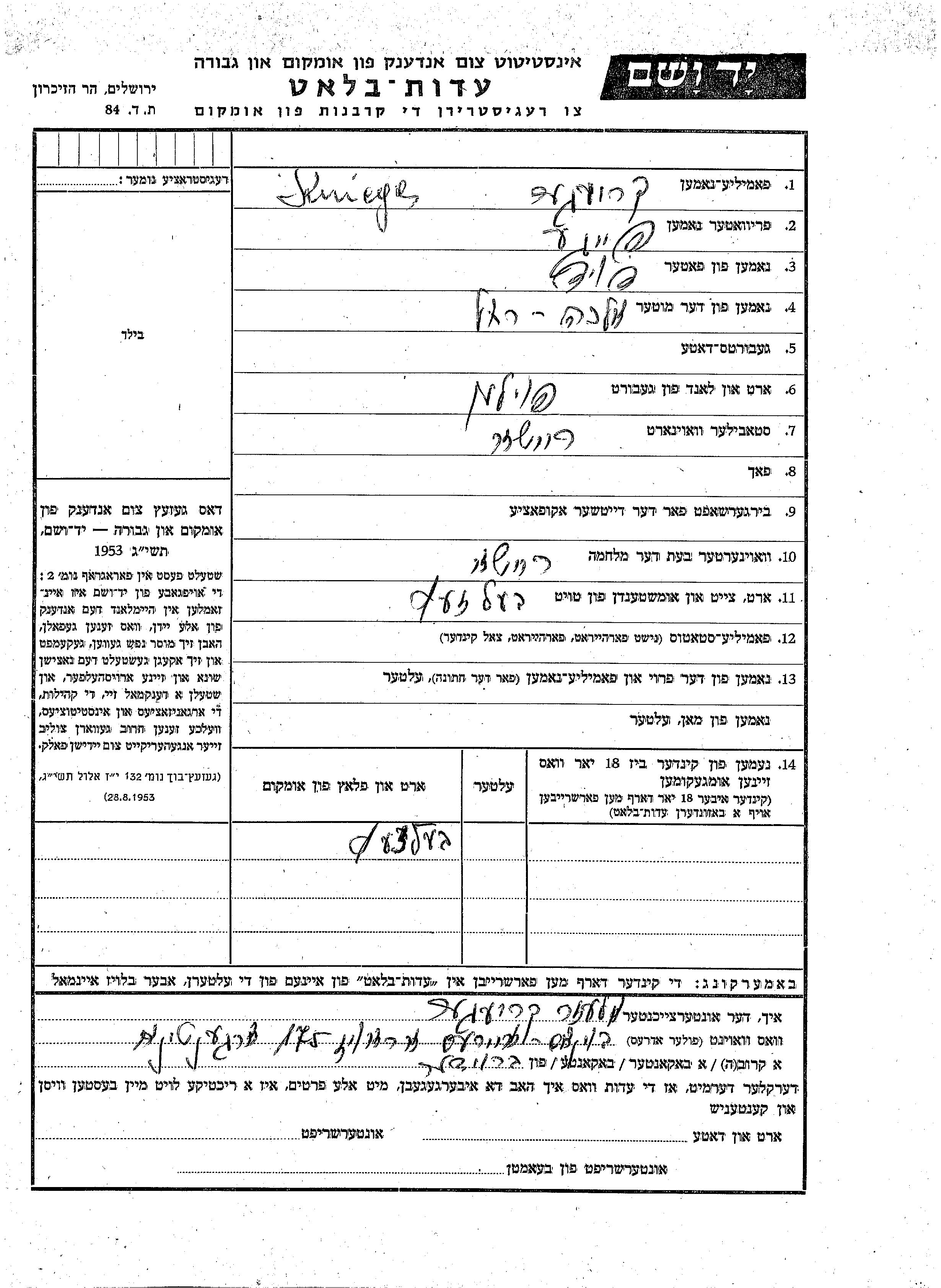 Yad Vashem - Gedenkblätter Sammlung