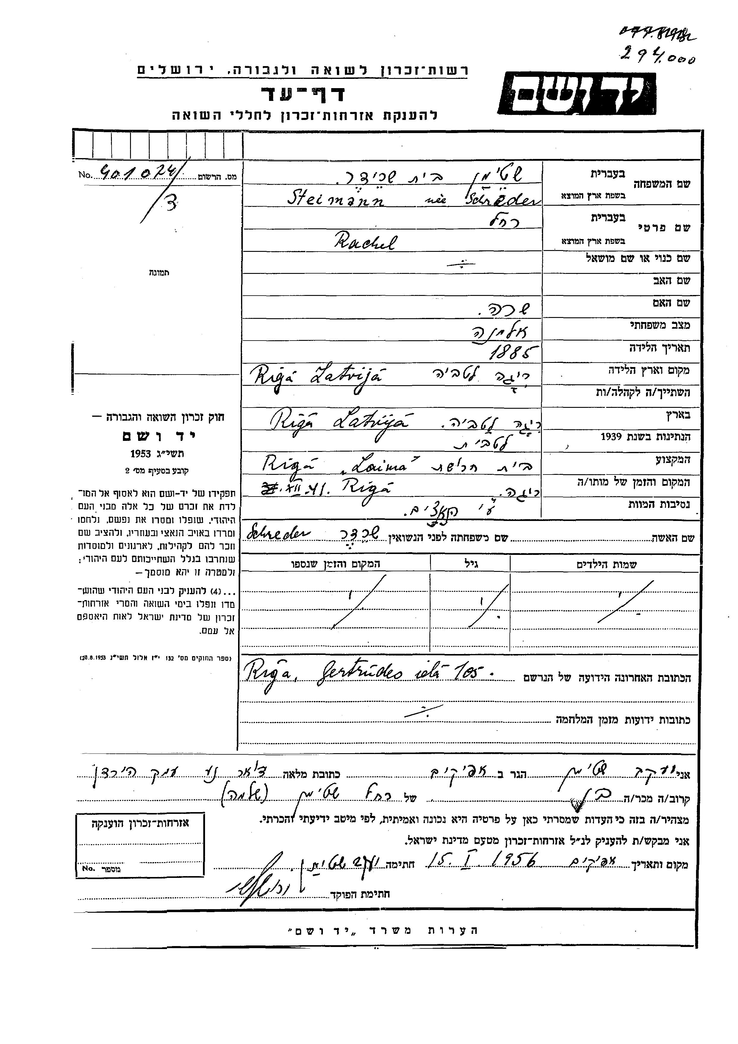 Rachel wurde in der Schoah ermordet. Todesort: Riga, Lettland im Jahr 31/12/1941.