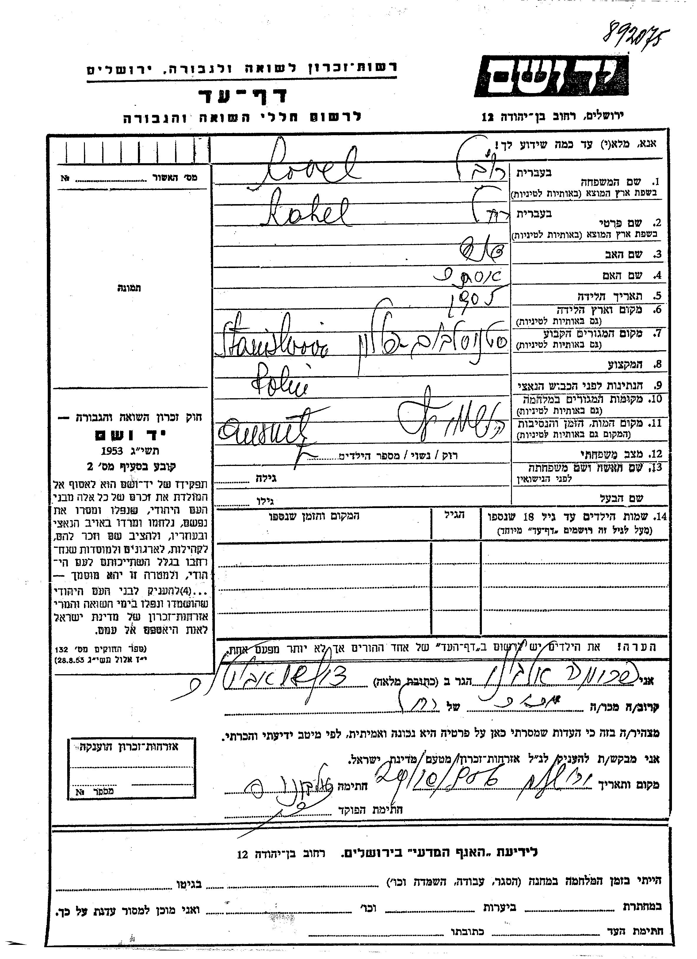Rahel wurde in der Schoah ermordet. Todesort: Auschwitz, Polen.
