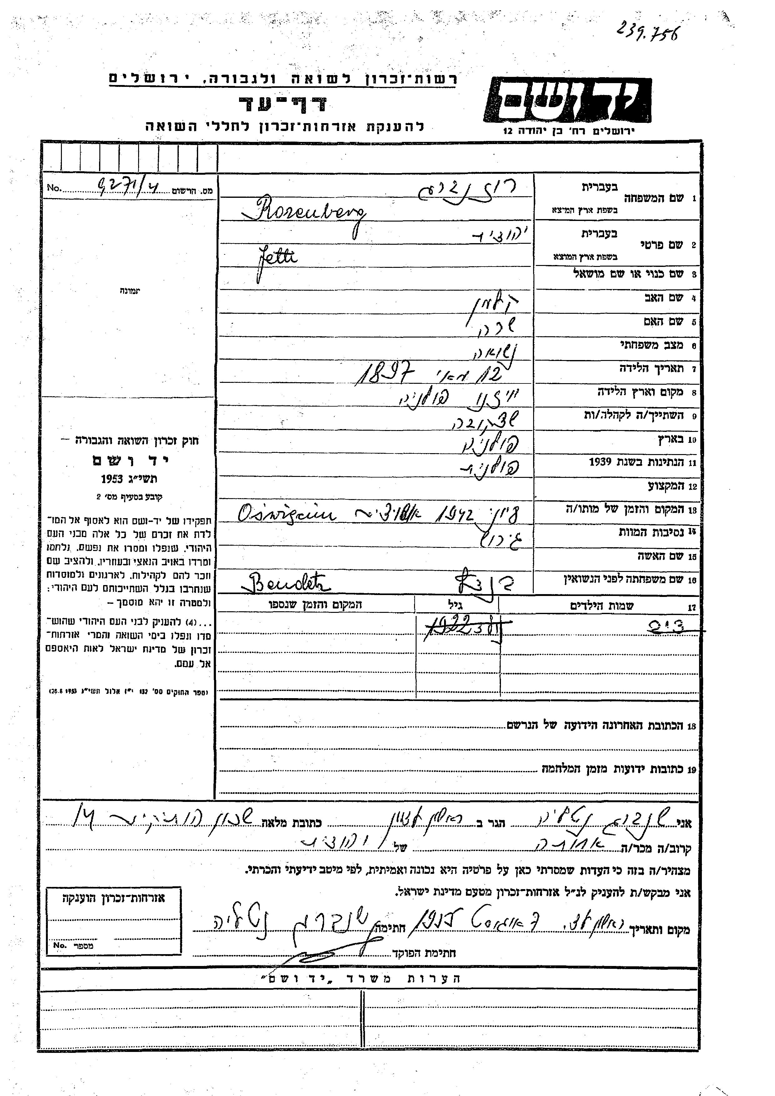 Jetti Rozenberg wurde im Jahr 1897 in Jaworzno, Polen geboren. Sie war die Tochter von Kalman und Sara. Sie war Verheiratet. Vor dem Zweiten Weltkrieg lebte sie in Szczakowa, Polen.