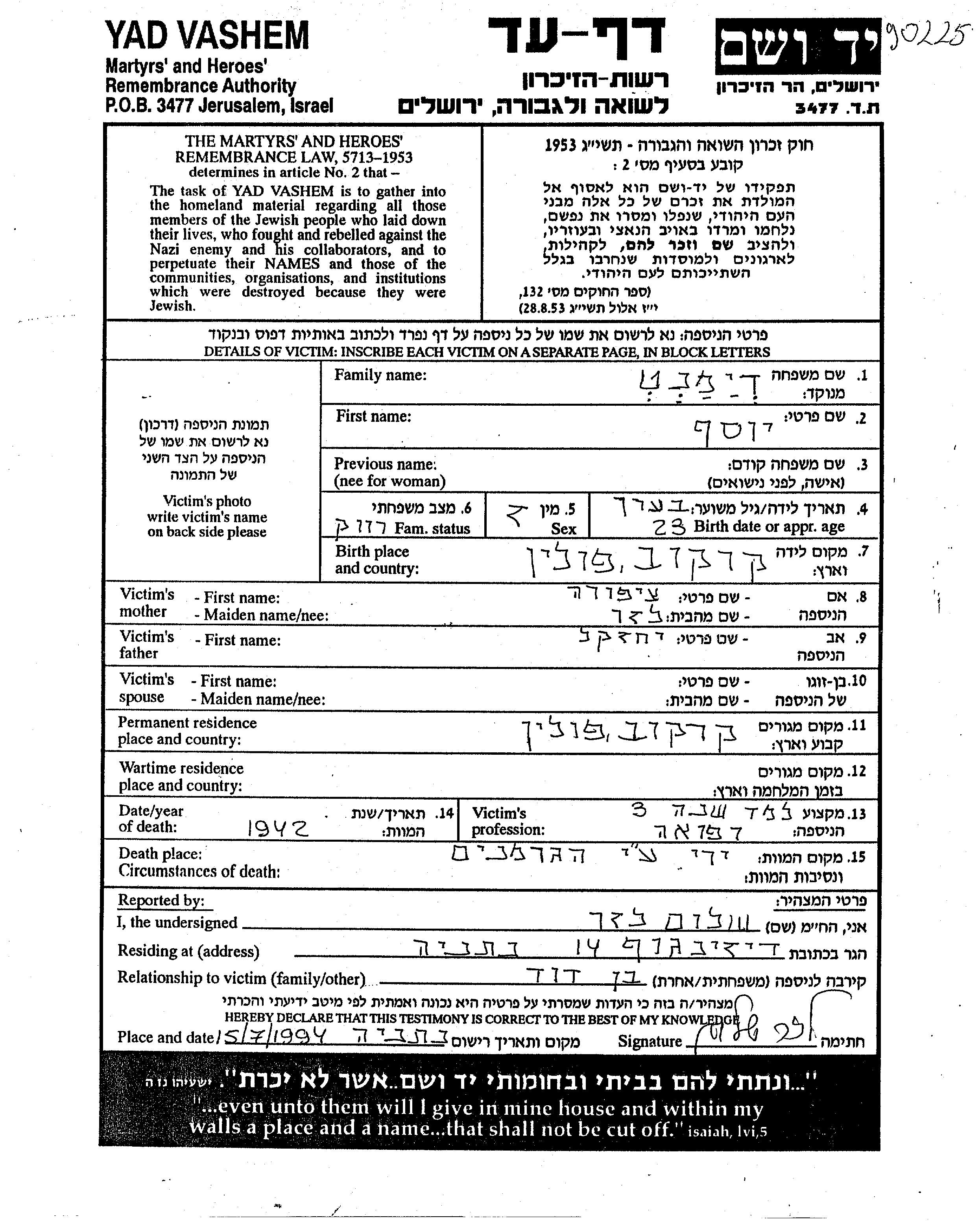 Yad Vashem - Gedenkblätter Sammlung