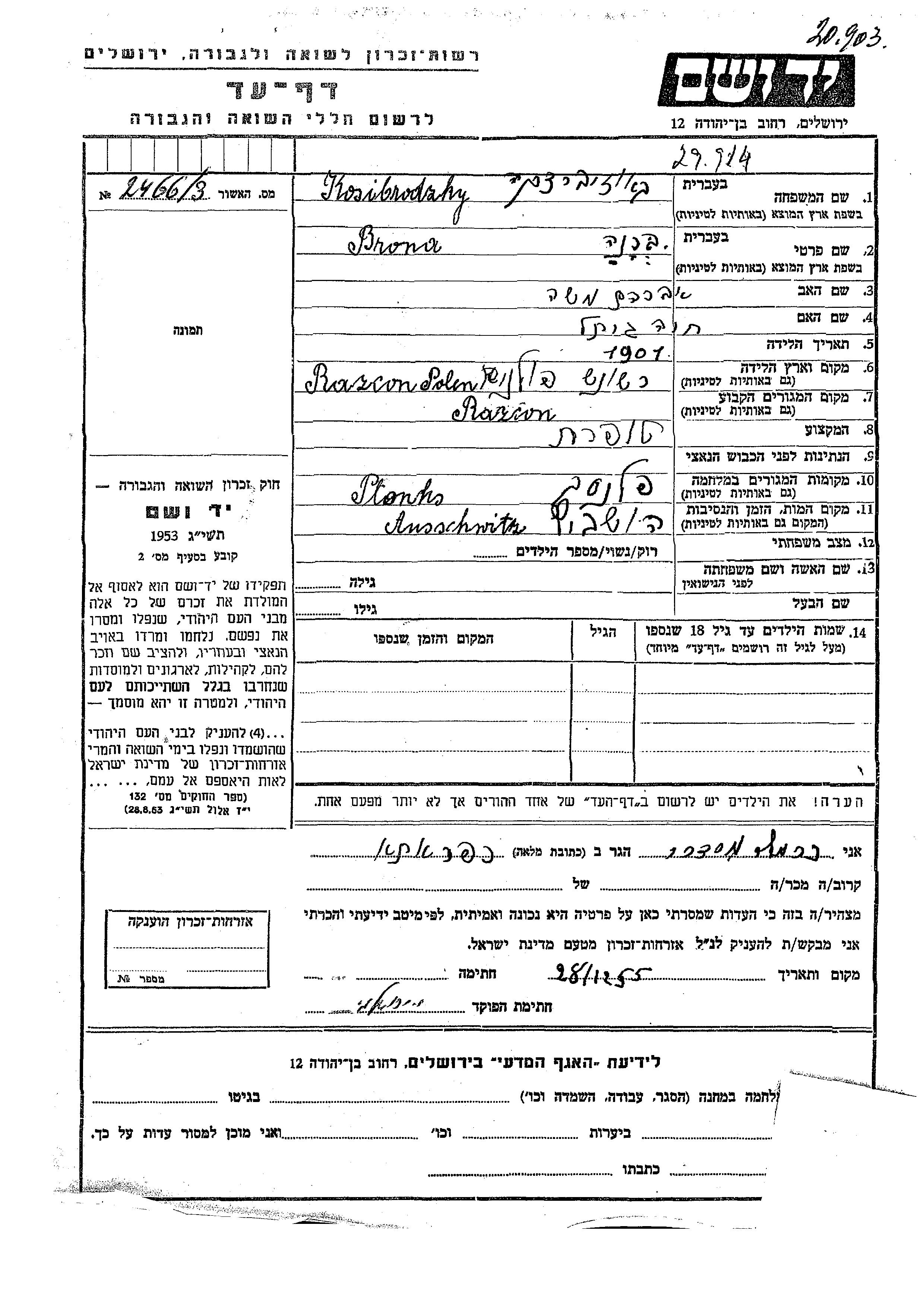 Brona wurde in der Schoah ermordet. Todesort: Auschwitz, Polen.
