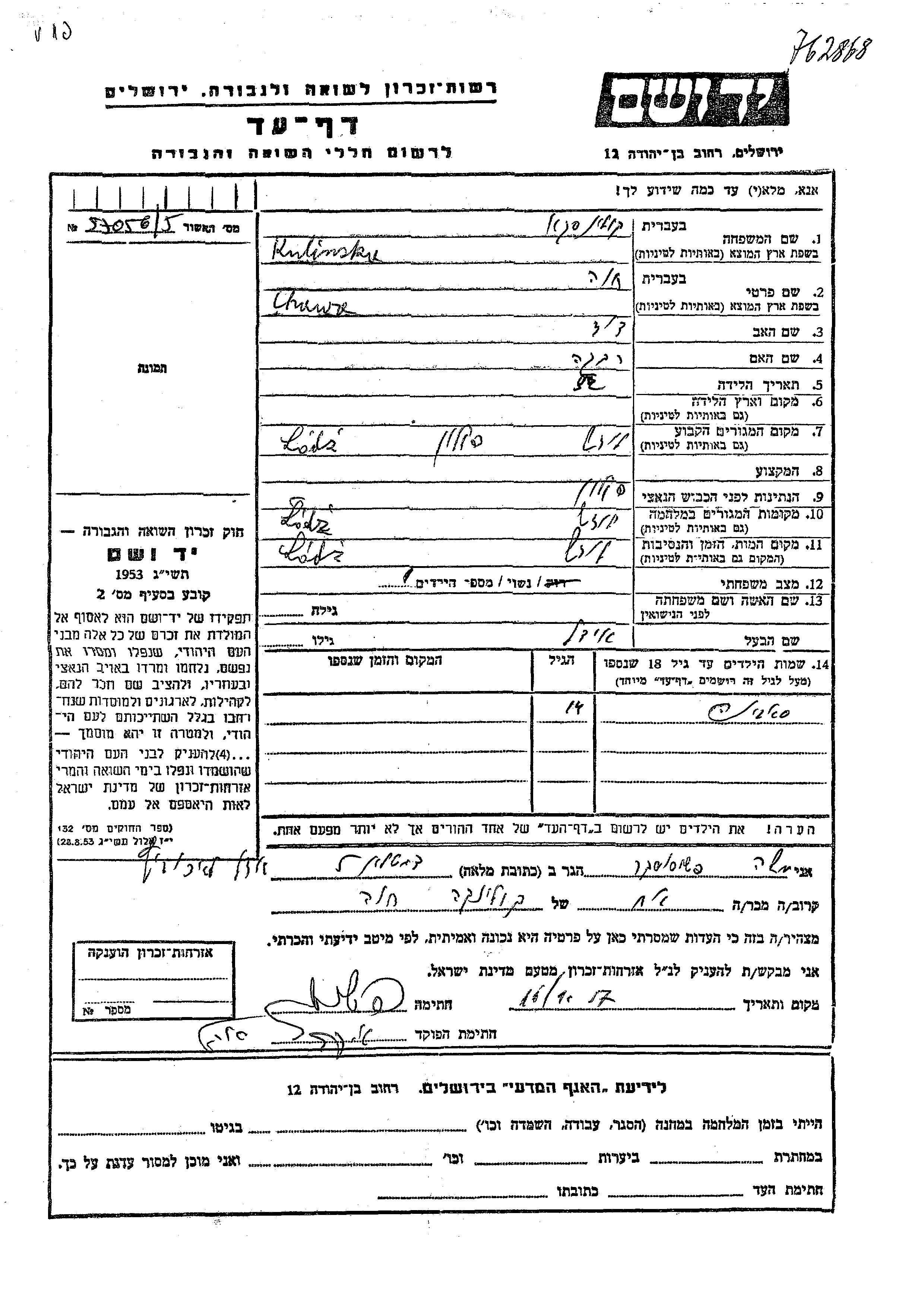 Chawa Kulinski wurde Sie war die Tochter von David und Rivka. Sie war mit Idl Verheiratet. Vor dem Zweiten Weltkrieg lebte sie in Lodz, Polen. Während des Krieges war sie in Lodz, Polen.