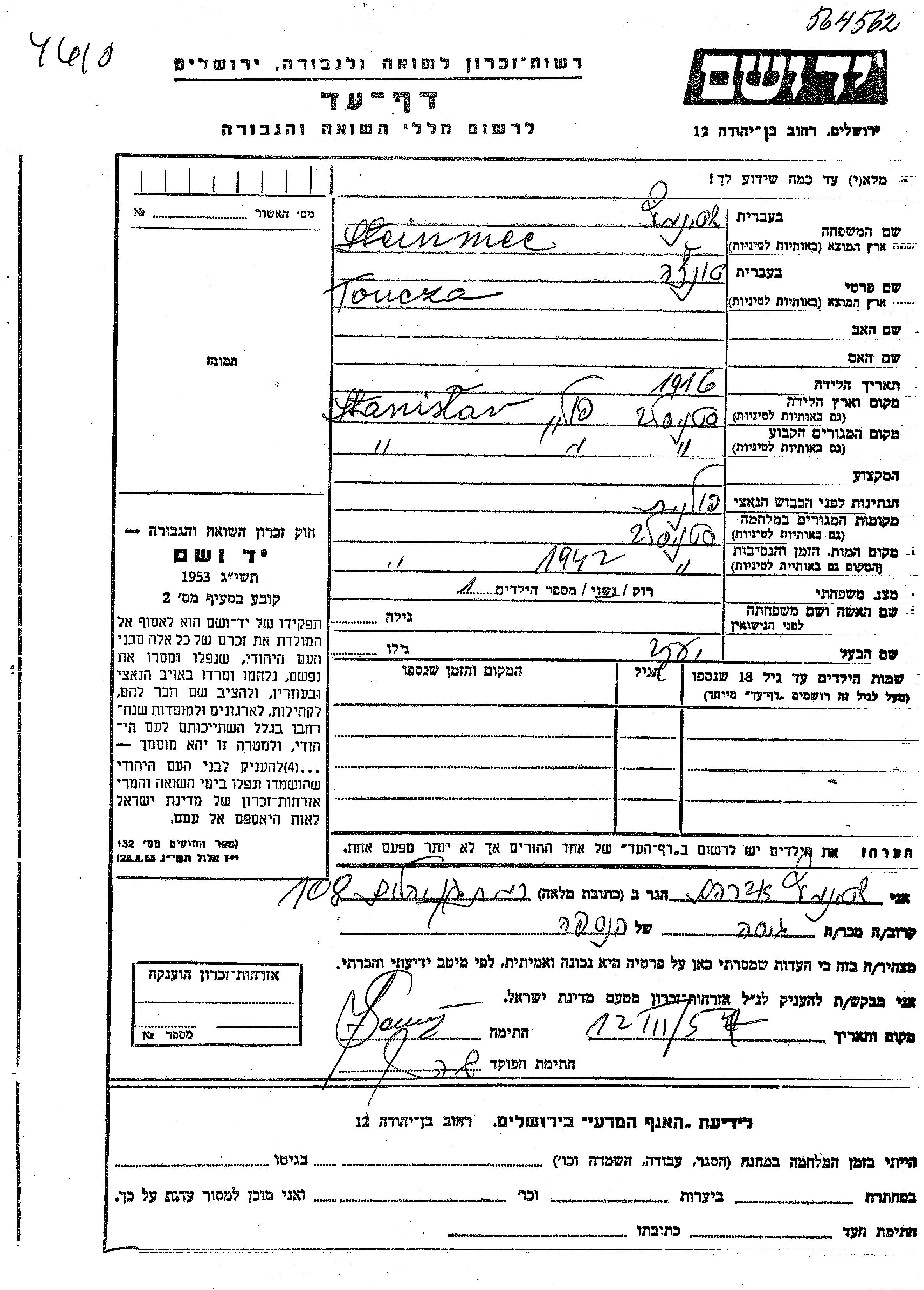 Toncza Toncha Steinmec wurde im Jahr 1916 in Stanislaw, Polen geboren. Sie war mit Yaakov Verheiratet. Vor dem Zweiten Weltkrieg lebte sie in Stanislaw, Polen. Während des Krieges war sie in Stanislaw, Polen.