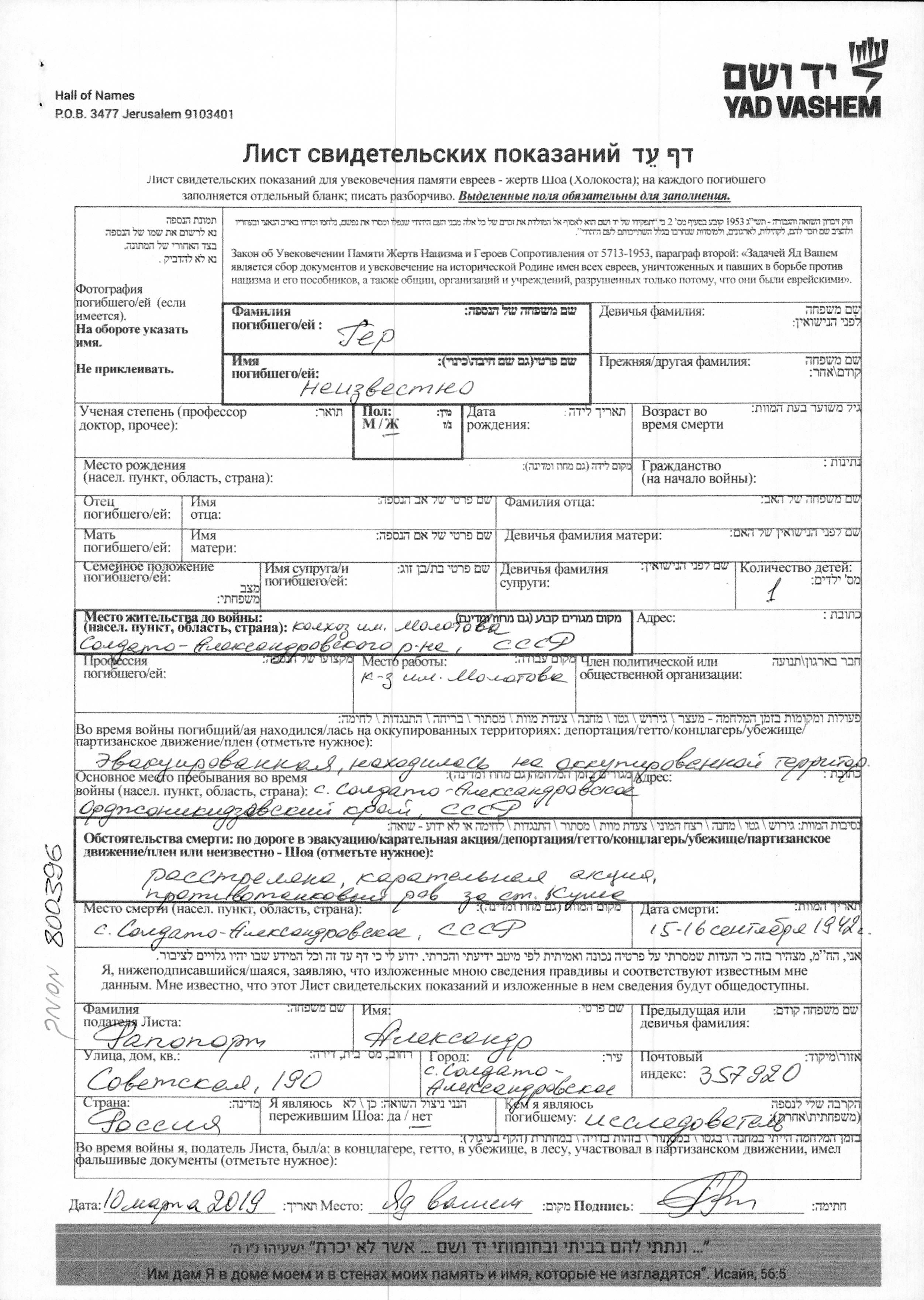 Er/sie wurde in der Schoah ermordet. Todesort: Soldato Aleksandrovskoye, Russland (UdSSR) im Jahr 15/09/1942.