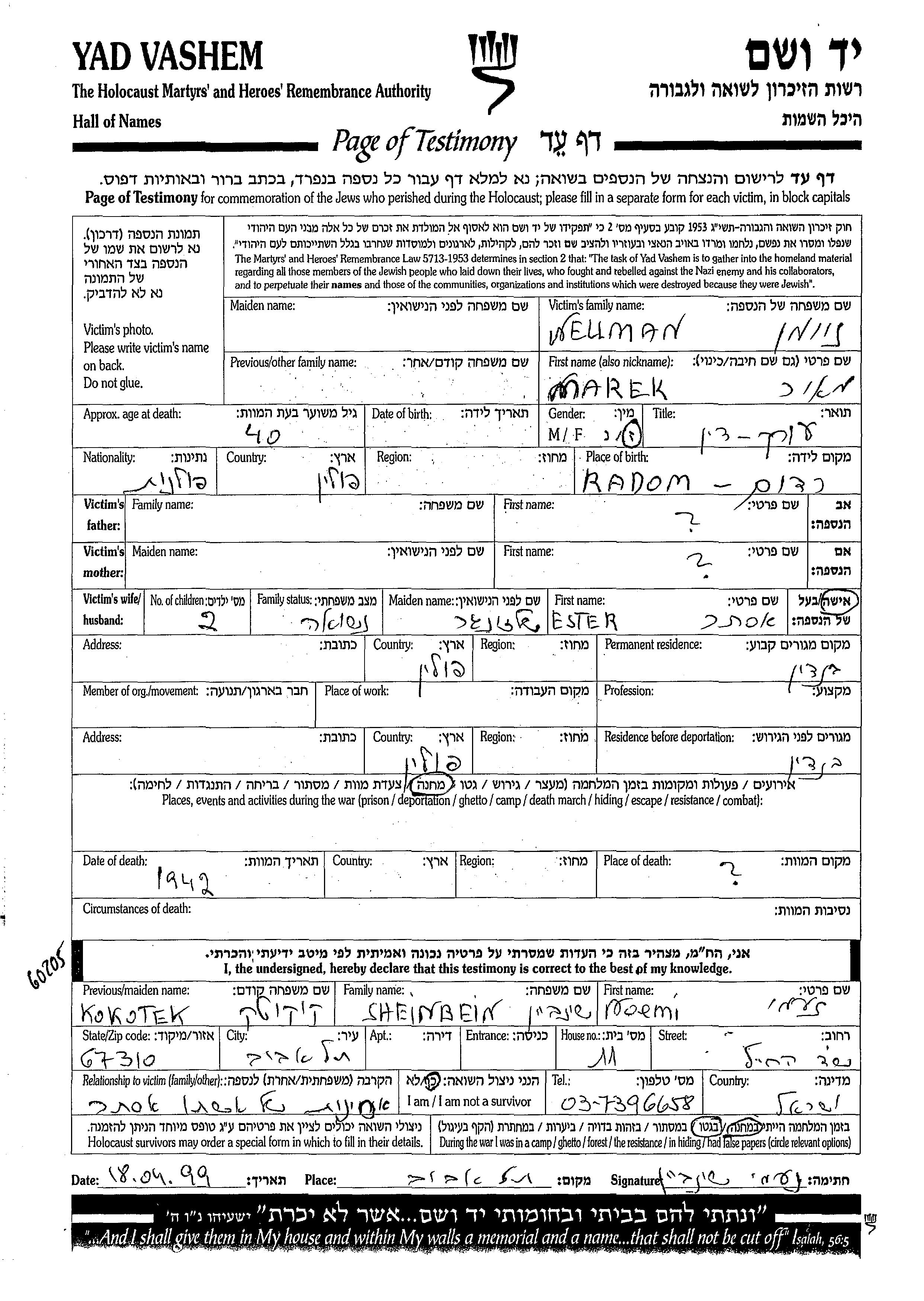 Marek Meir wurde in der Schoah ermordet. Todesort: Auschwitz, Polen im Jahr 1942.