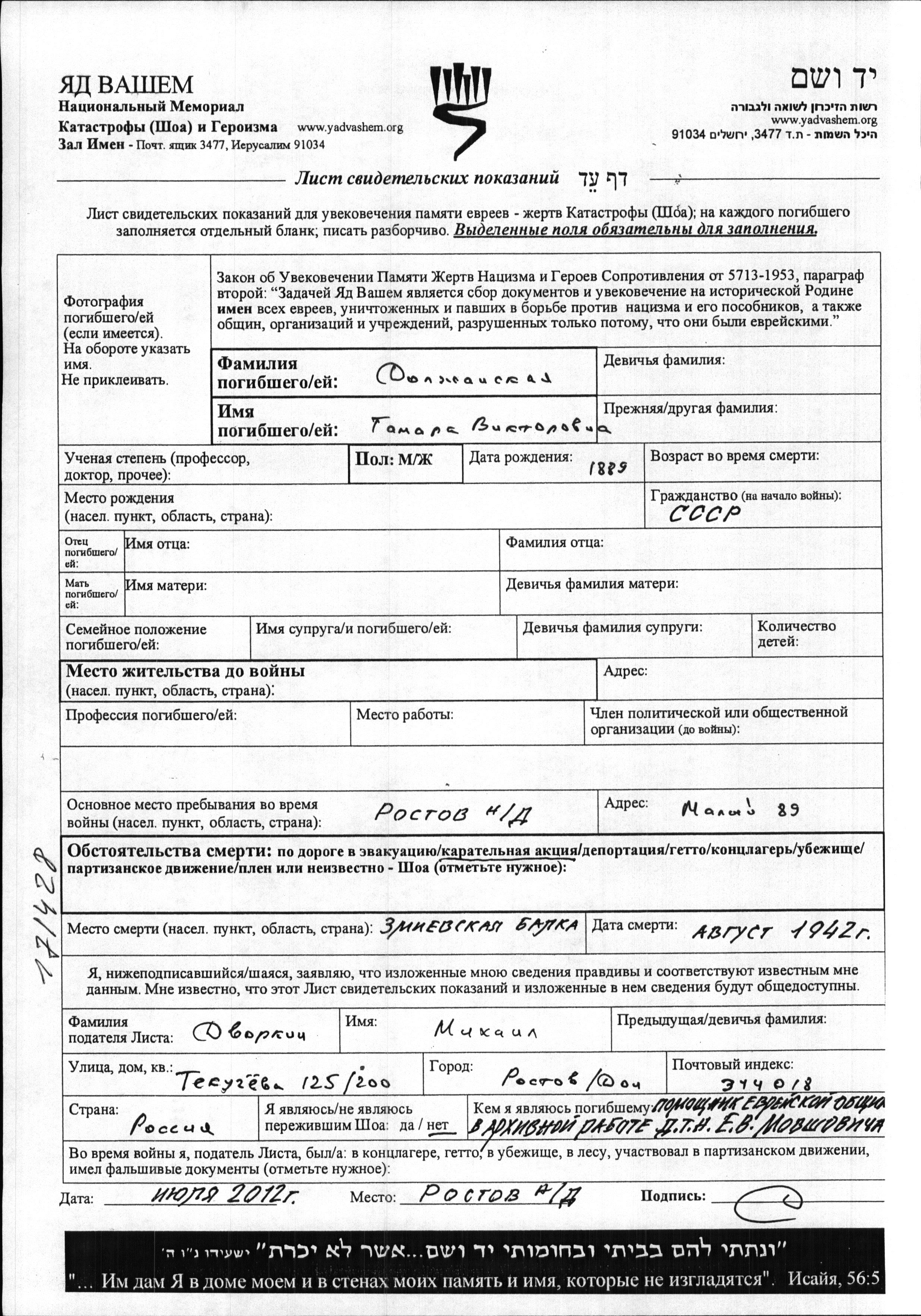 Tamara wurde in der Schoah ermordet. Todesort: unbekannt im Jahr 1942.