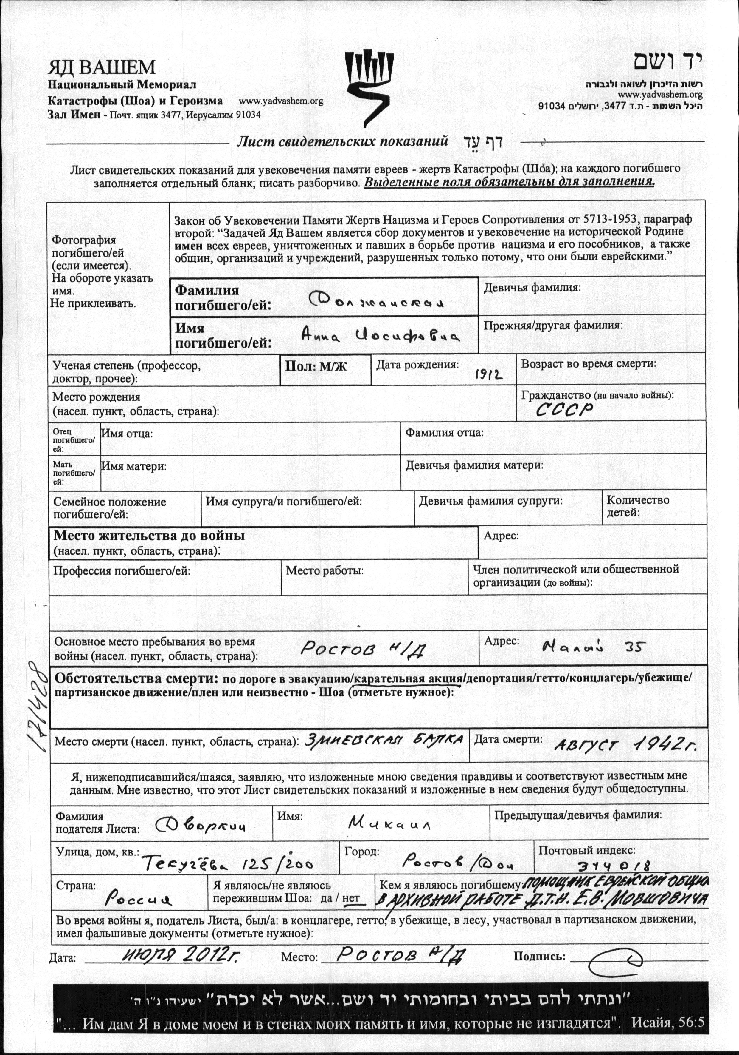 Anna Dolzhanskaya wurde im Jahr 1912 in unbekannter Ort geboren. Vor dem Zweiten Weltkrieg lebte sie in Rostov na Donu, Russland (UdSSR).