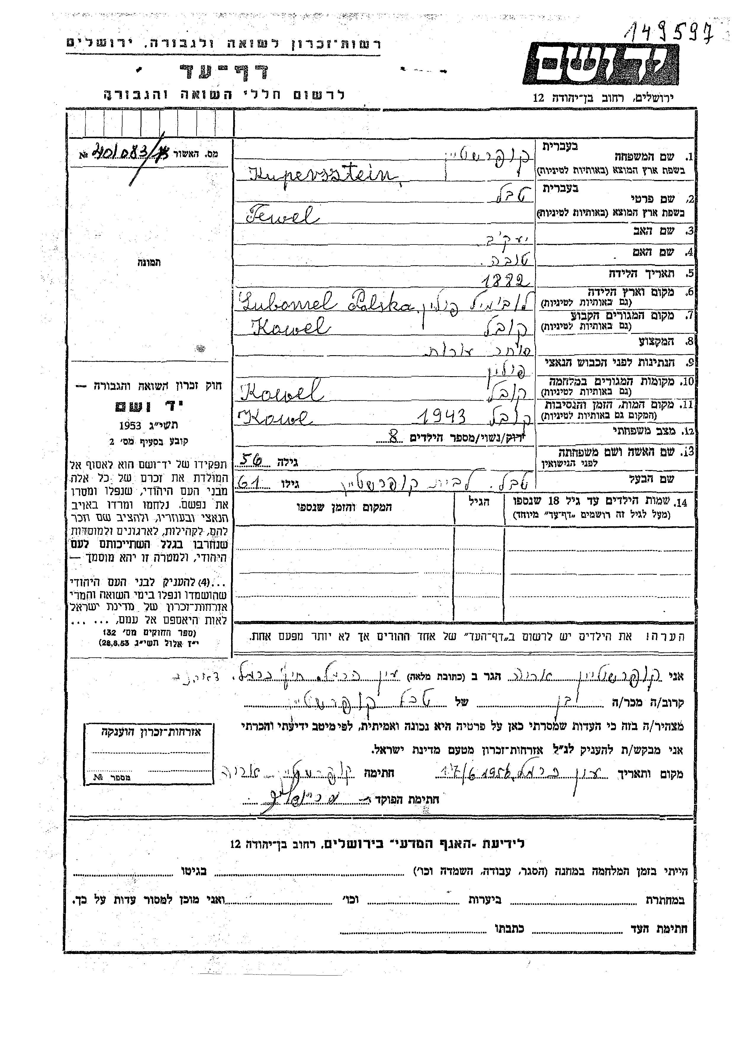Tewel wurde in der Schoah ermordet. Todesort: Kowel, Polen im Jahr 1943.