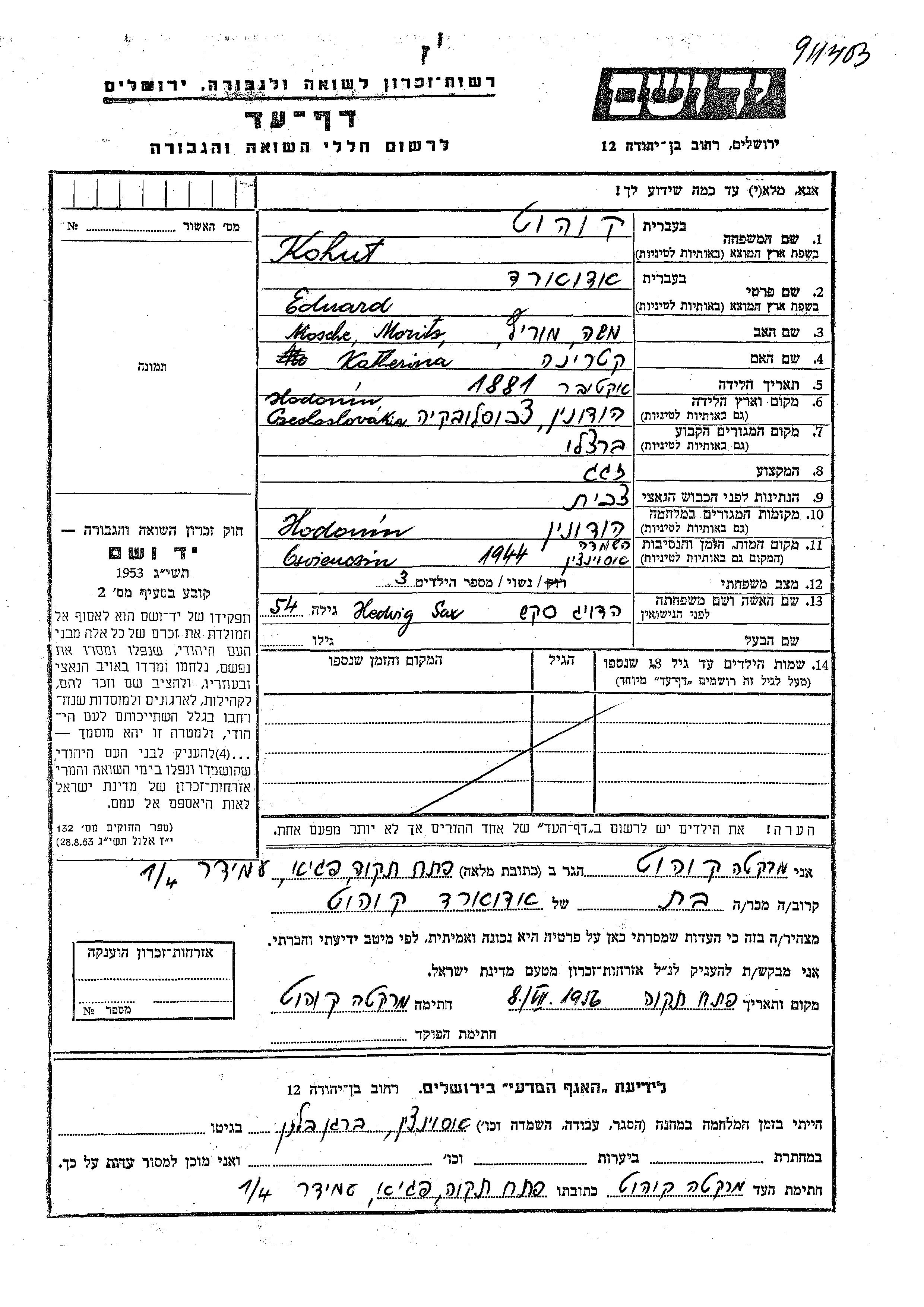 Edward wurde in der Schoah ermordet. Todesort: Auschwitz, Polen im Jahr 1944.