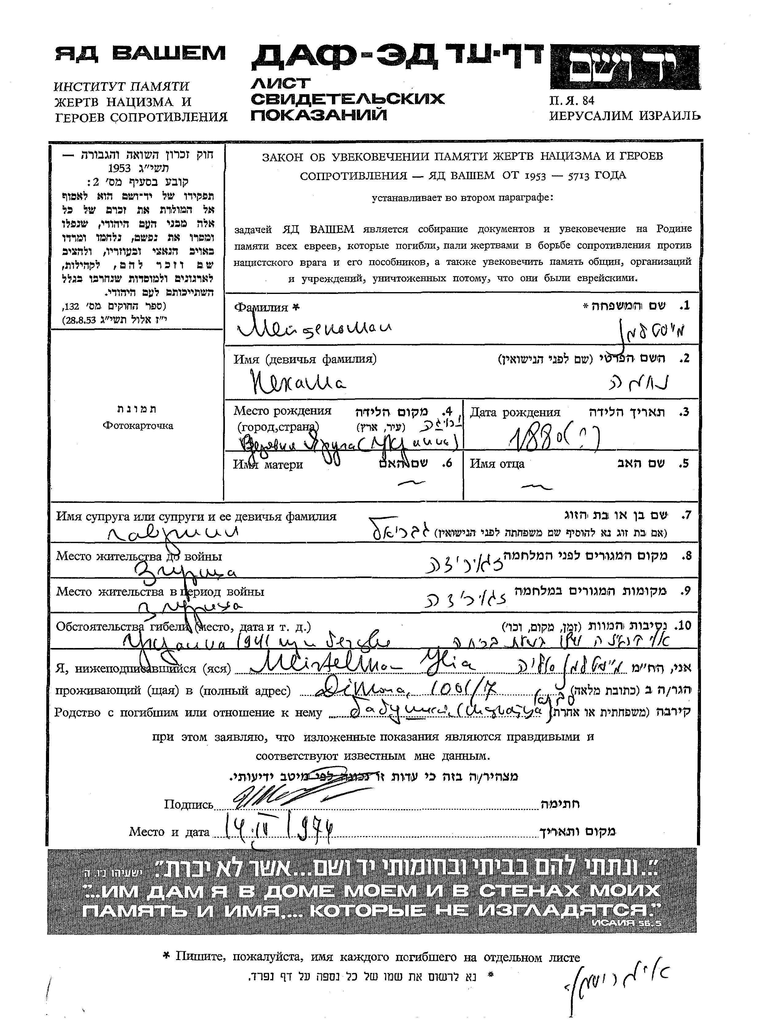 Mejstelman Mistelman | Nechama | Zgorita, Rumänien | Gedenkblatt |
