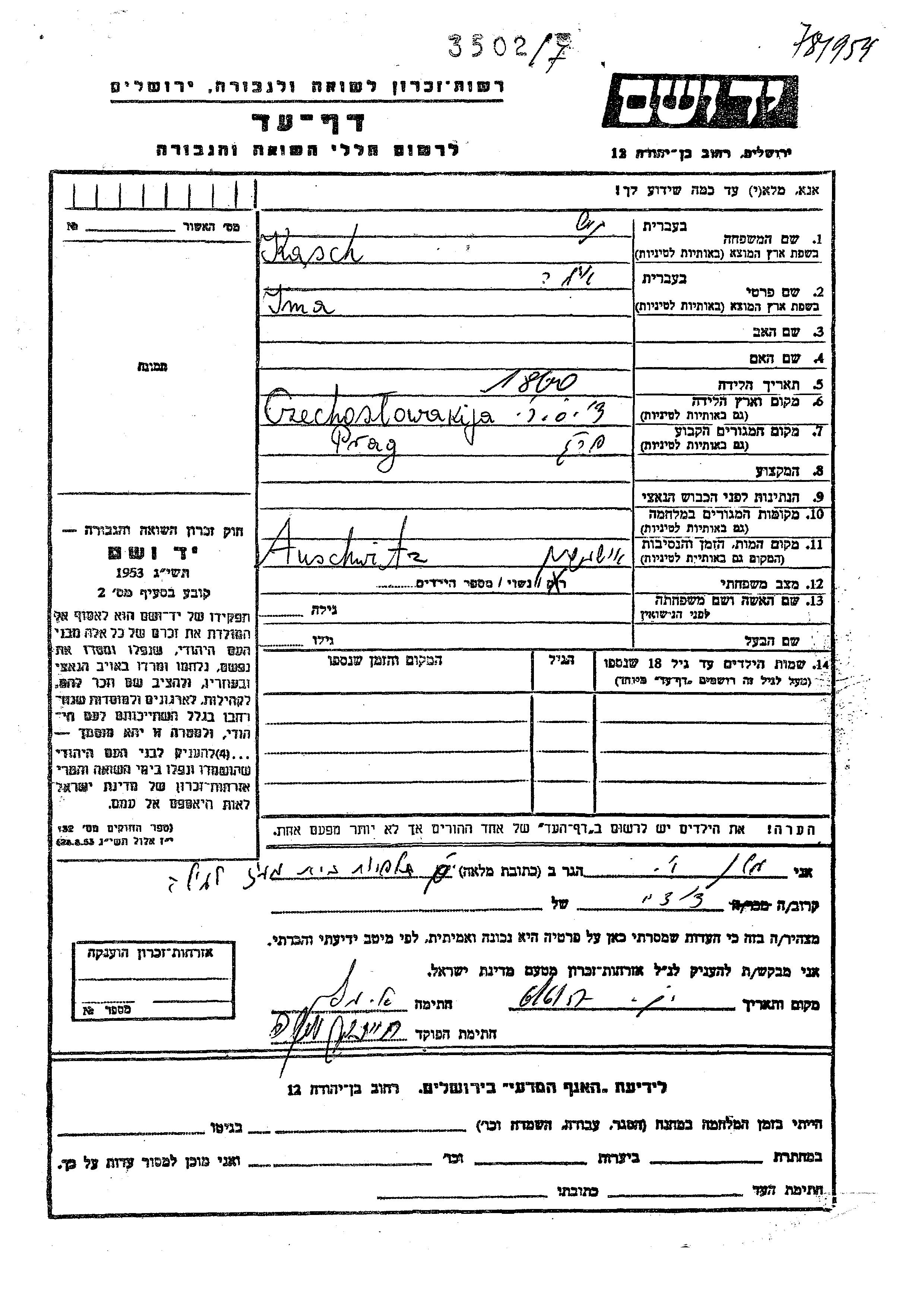 Ama Kasch wurde im Jahr 1860 in Tschechoslowakei geboren. Sie war Verheiratet. Vor dem Zweiten Weltkrieg lebte sie in Prag, Tschechoslowakei.