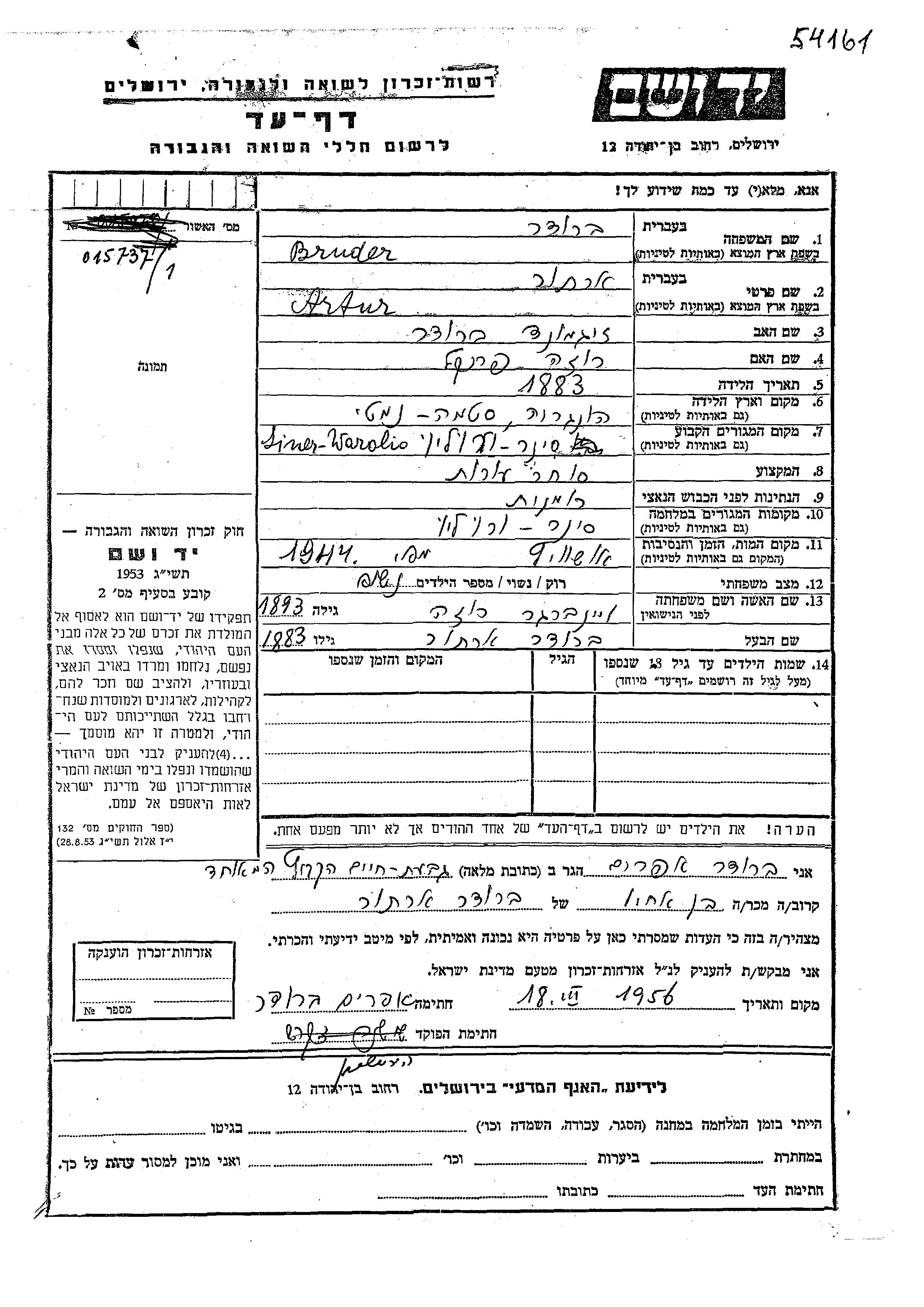 Artur Yeno wurde in der Schoah ermordet. Todesort: unbekannter Ort im Jahr 1944.