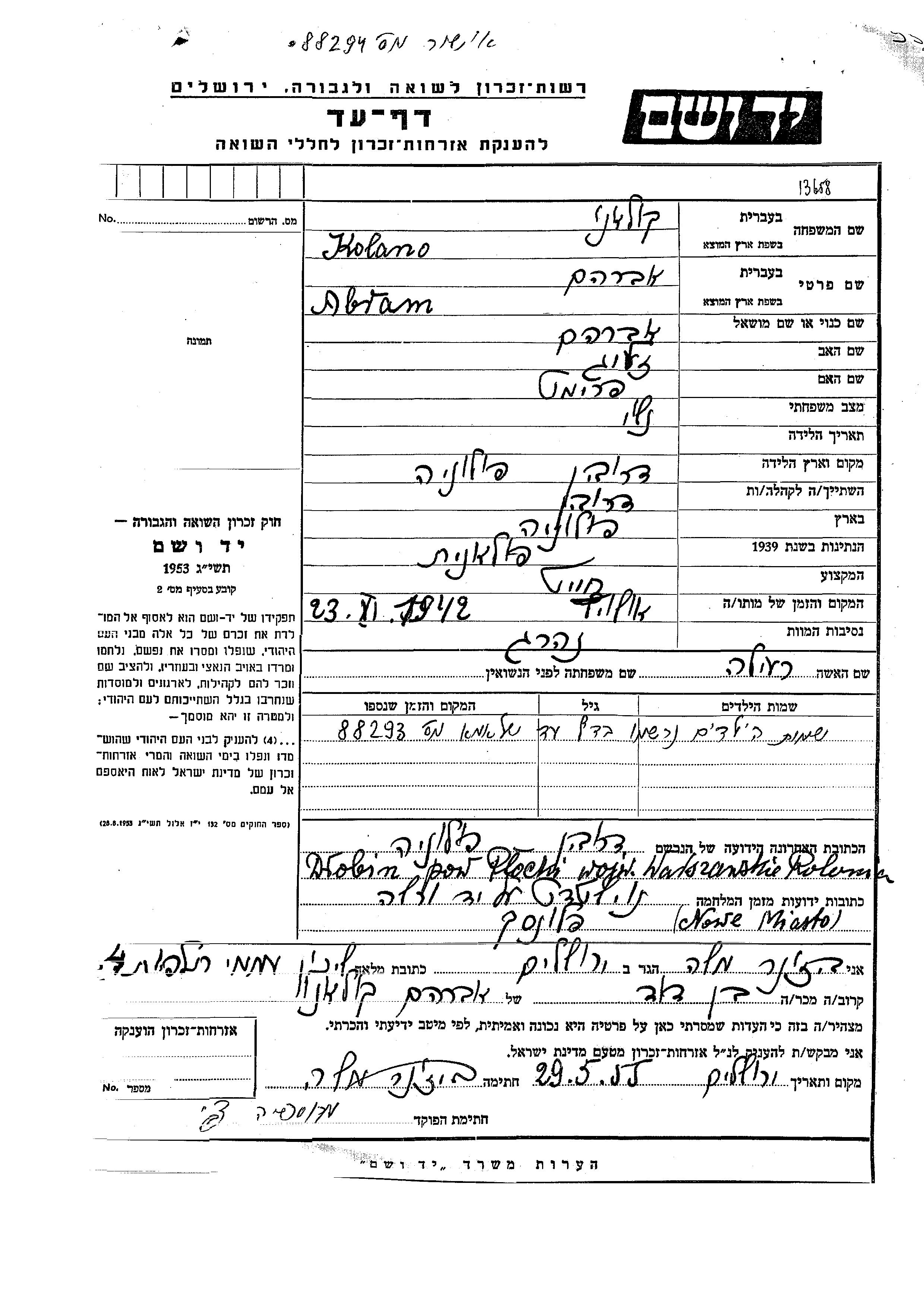 Abram wurde in der Schoah ermordet. Todesort: Auschwitz, Polen im Jahr 23/11/1942.