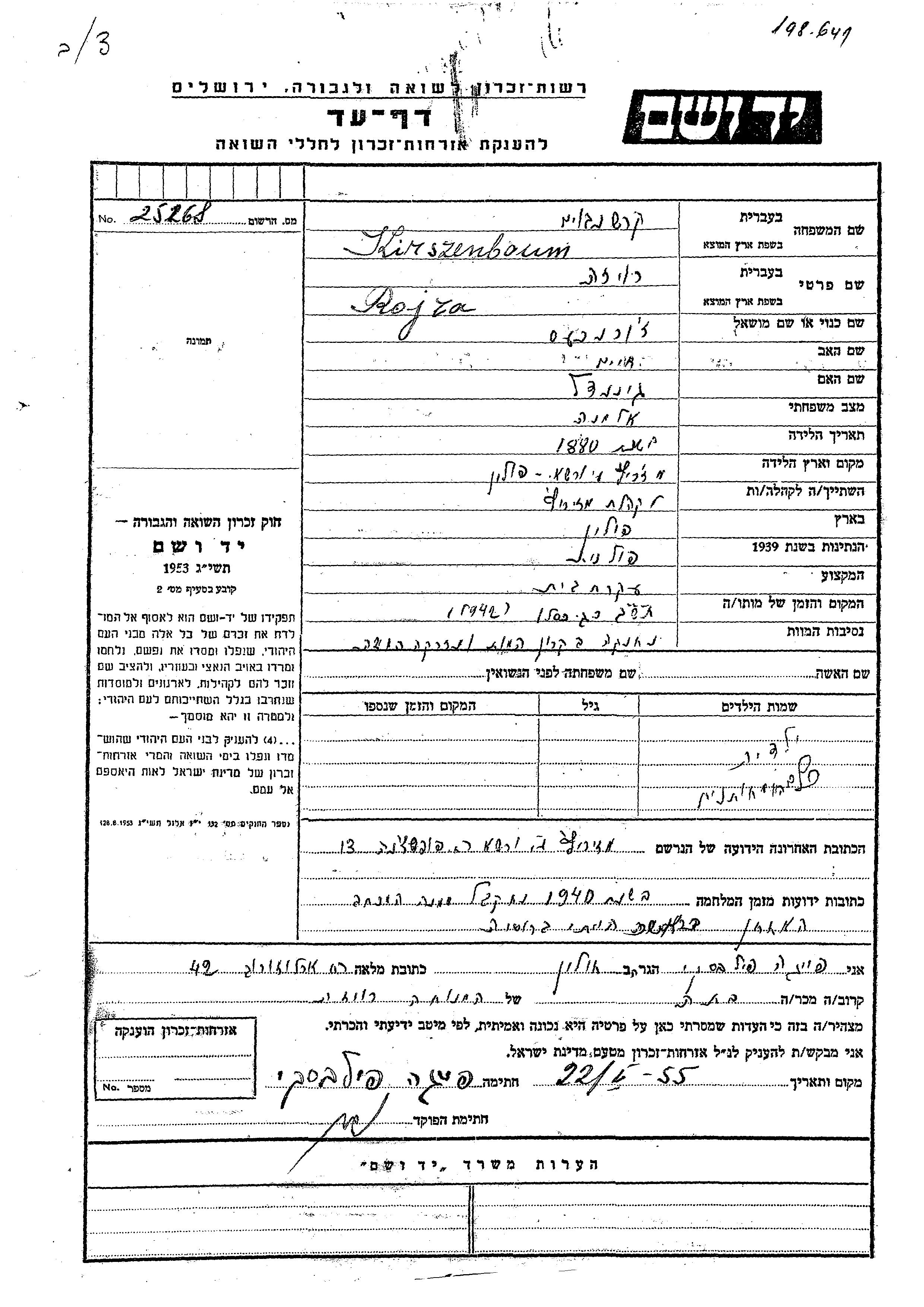 Rojza wurde in der Schoah ermordet. Todesort: unbekannt im Jahr 1942.