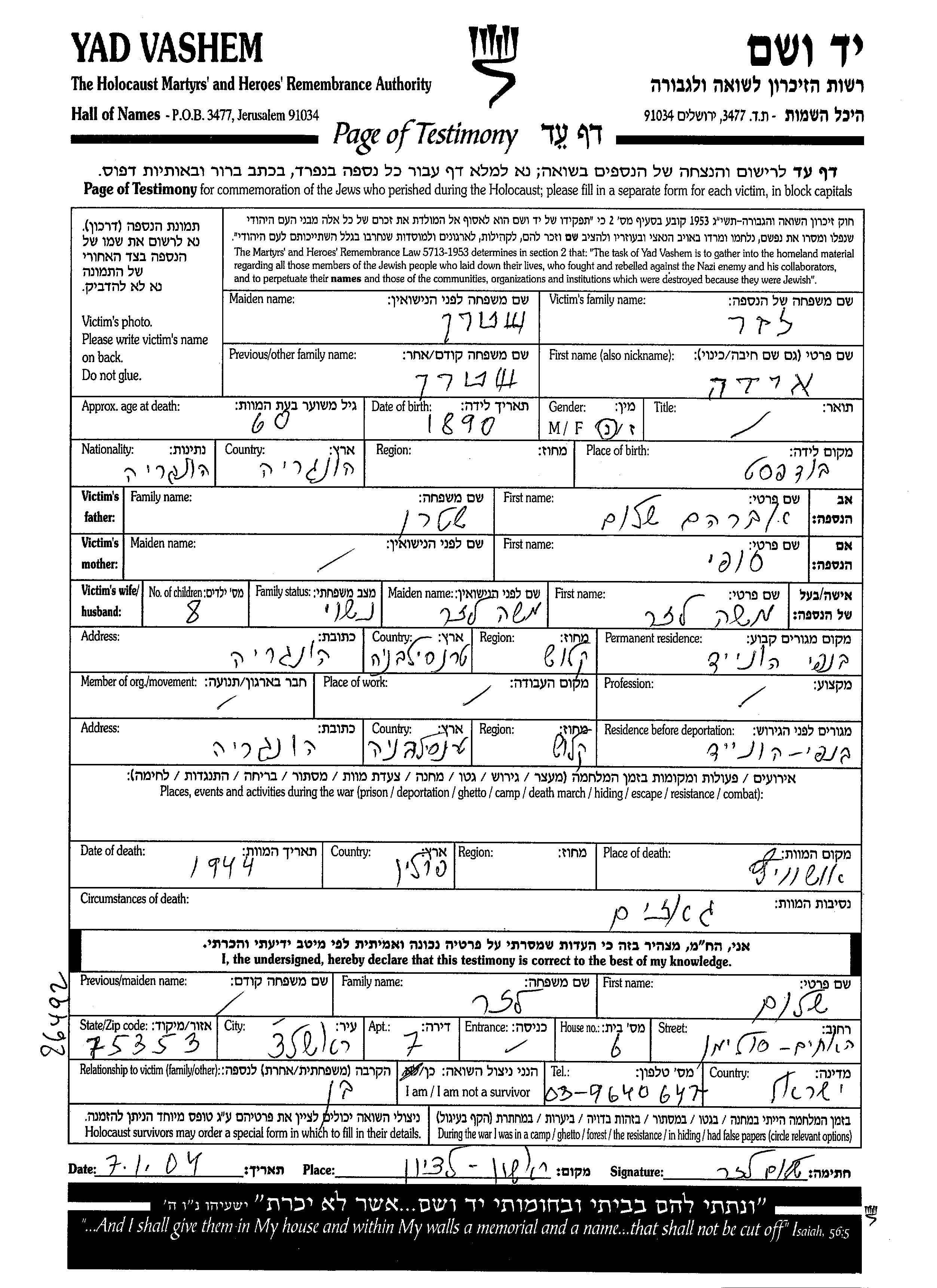 Ida wurde in der Schoah ermordet. Todesort: Auschwitz, Polen im Jahr 1944.
