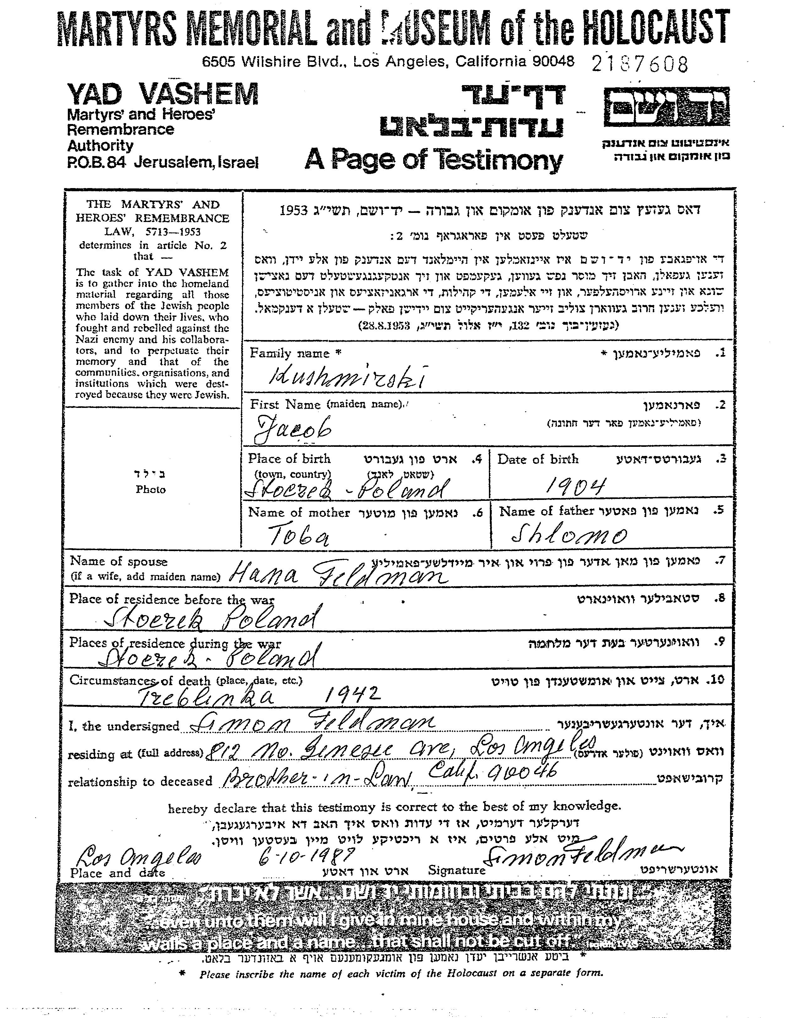 Jakob wurde in der Schoah ermordet. Todesort: unbekannter Ort im Jahr 1942.