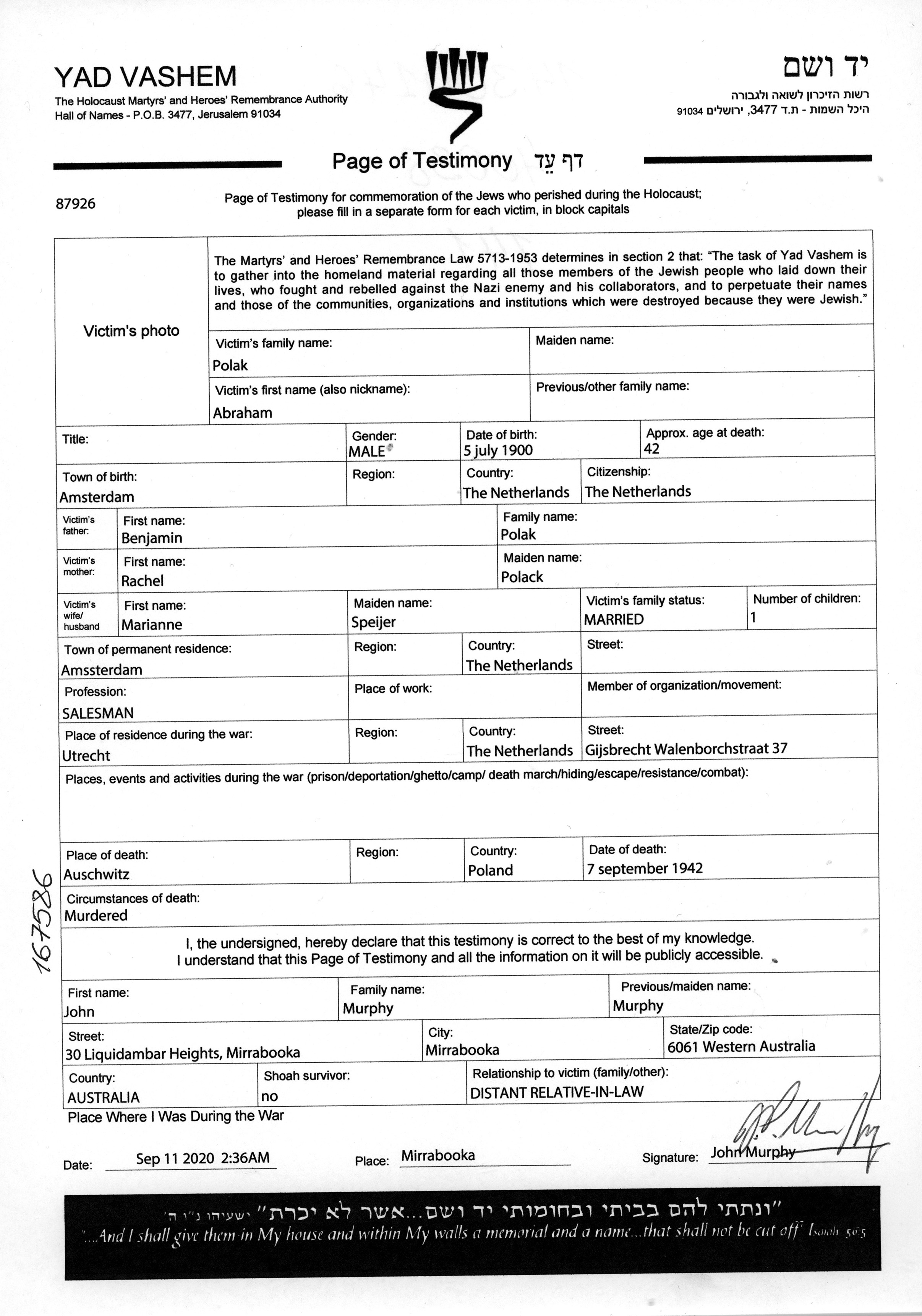 Polak | Abraham | 1900 | Amsterdam, Niederlande | private Dokumentation |