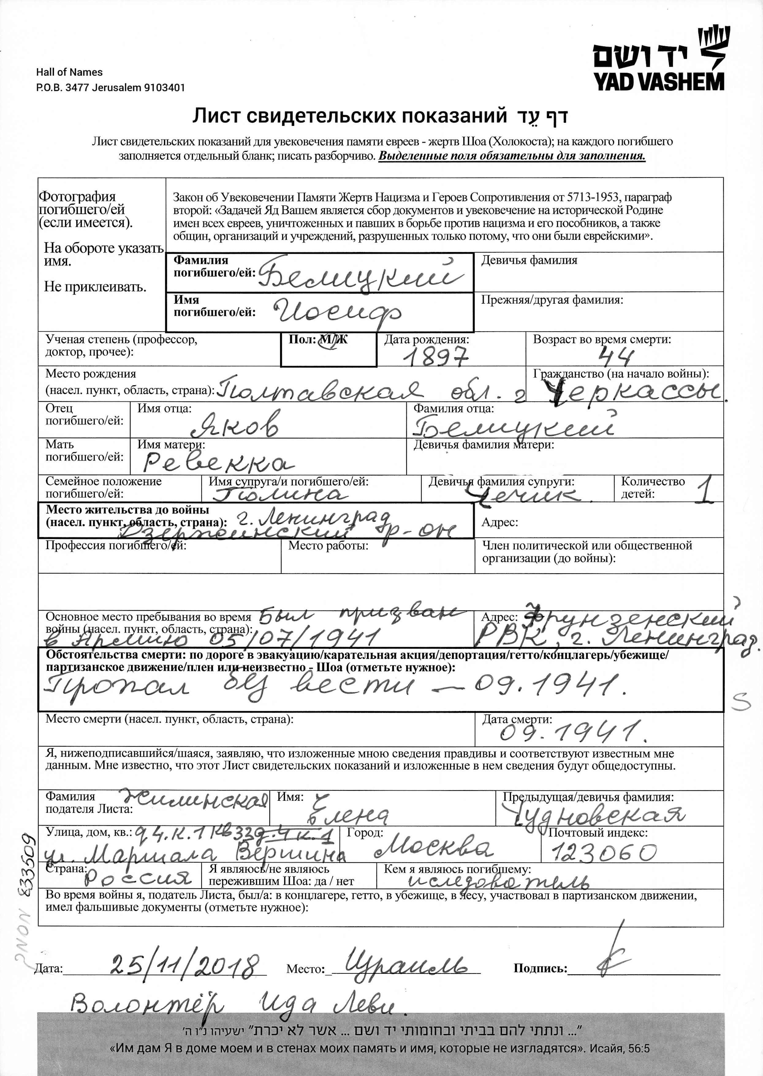 Iosif wurde in der Schoah ermordet. Todesort: unbekannter Ort im Jahr 09/1941.