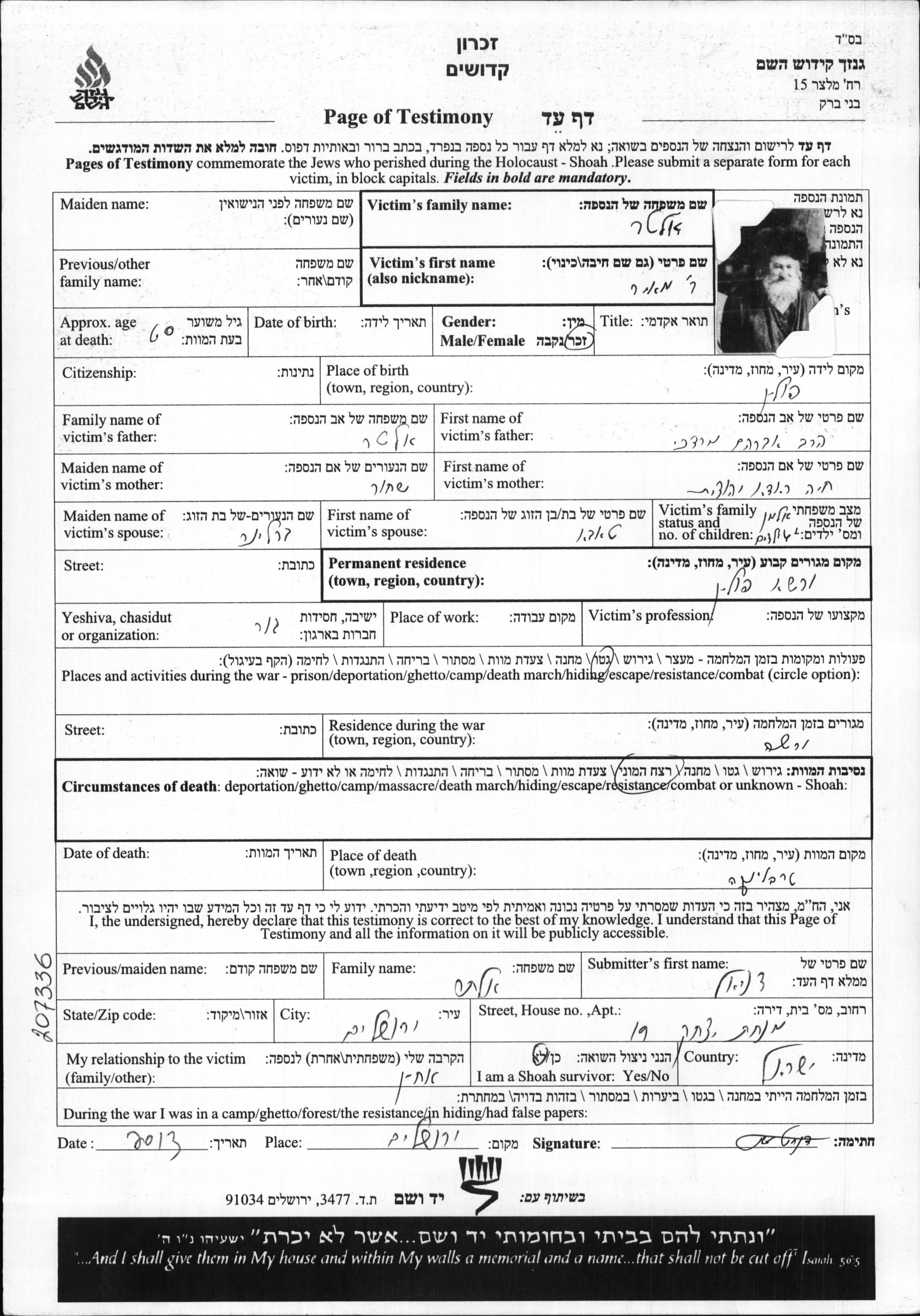 Alter | Meir | Gora Kalwaria, Polen | Aufzeichnungen ueber ermordete Personen | |