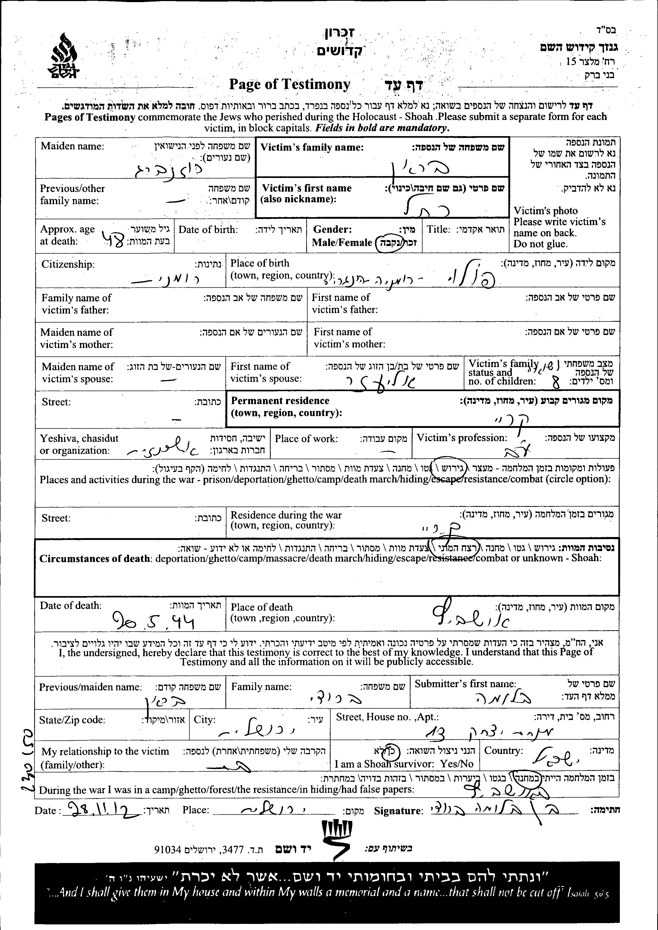 Rakhel wurde in der Schoah ermordet. Todesort: Auschwitz, Polen im Jahr 1944.