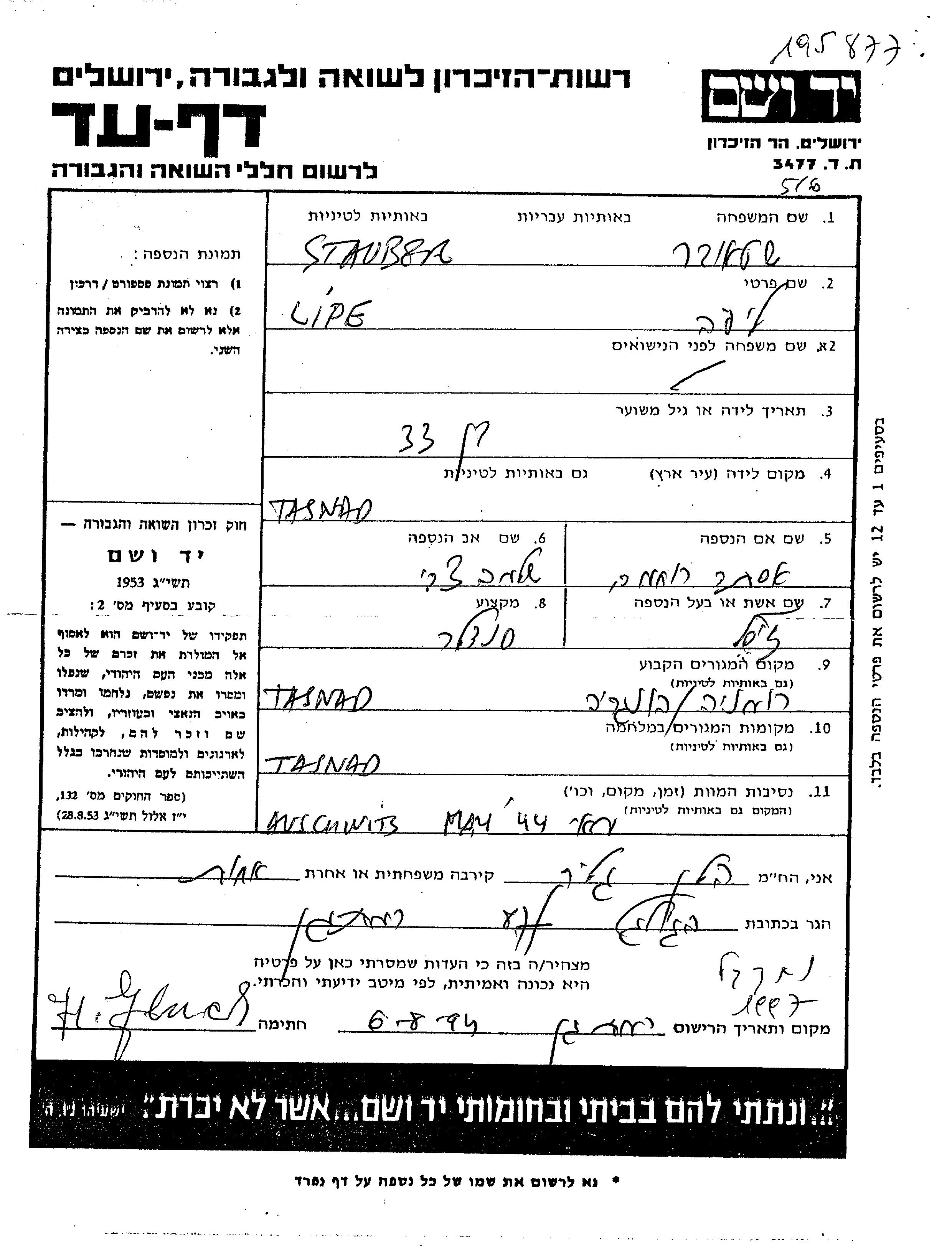 Lipe wurde in der Schoah ermordet. Todesort: Auschwitz, Polen im Jahr 1944.