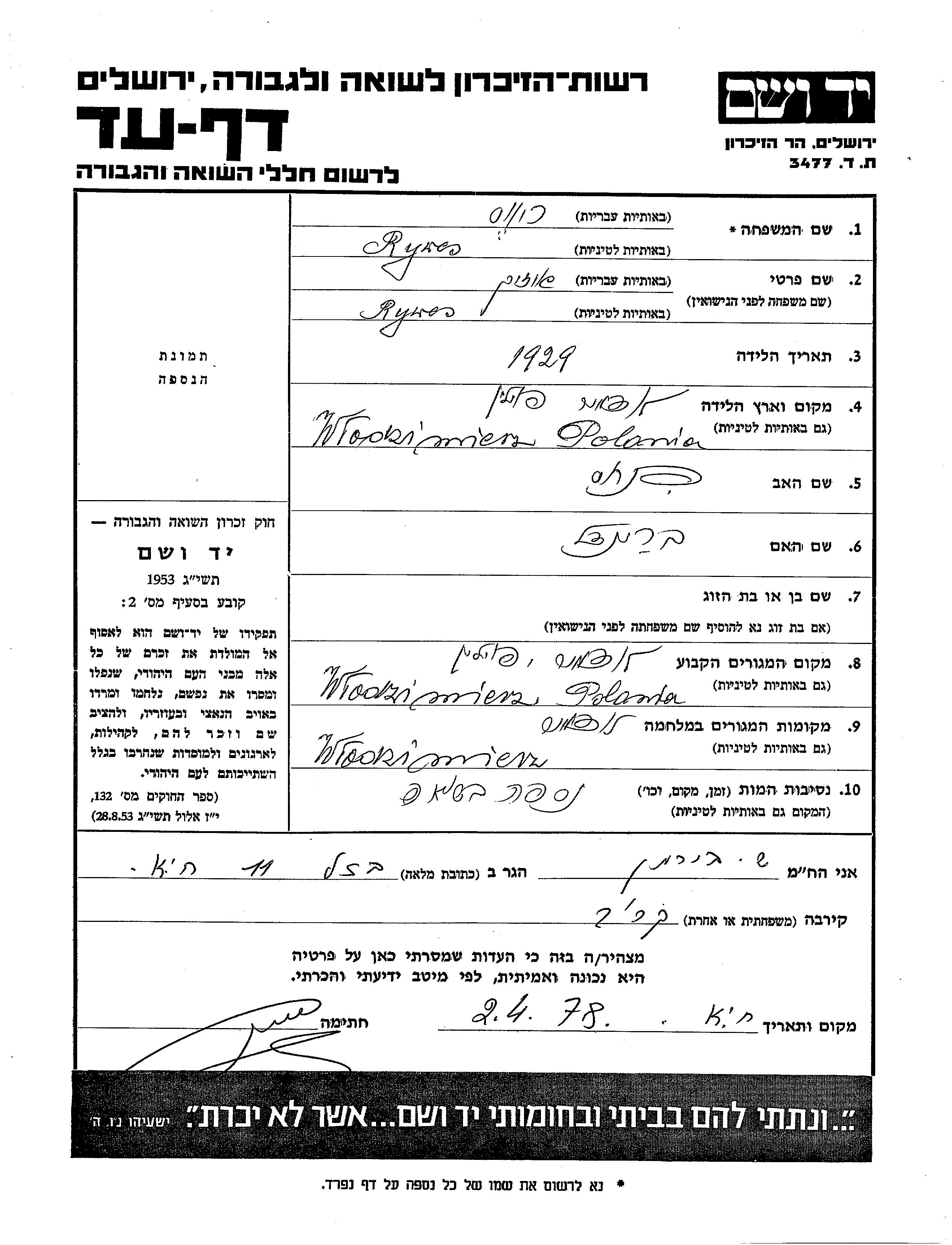 Rywos | Aizik | 1929 | Ludmir, Polen | Gedenkblatt |