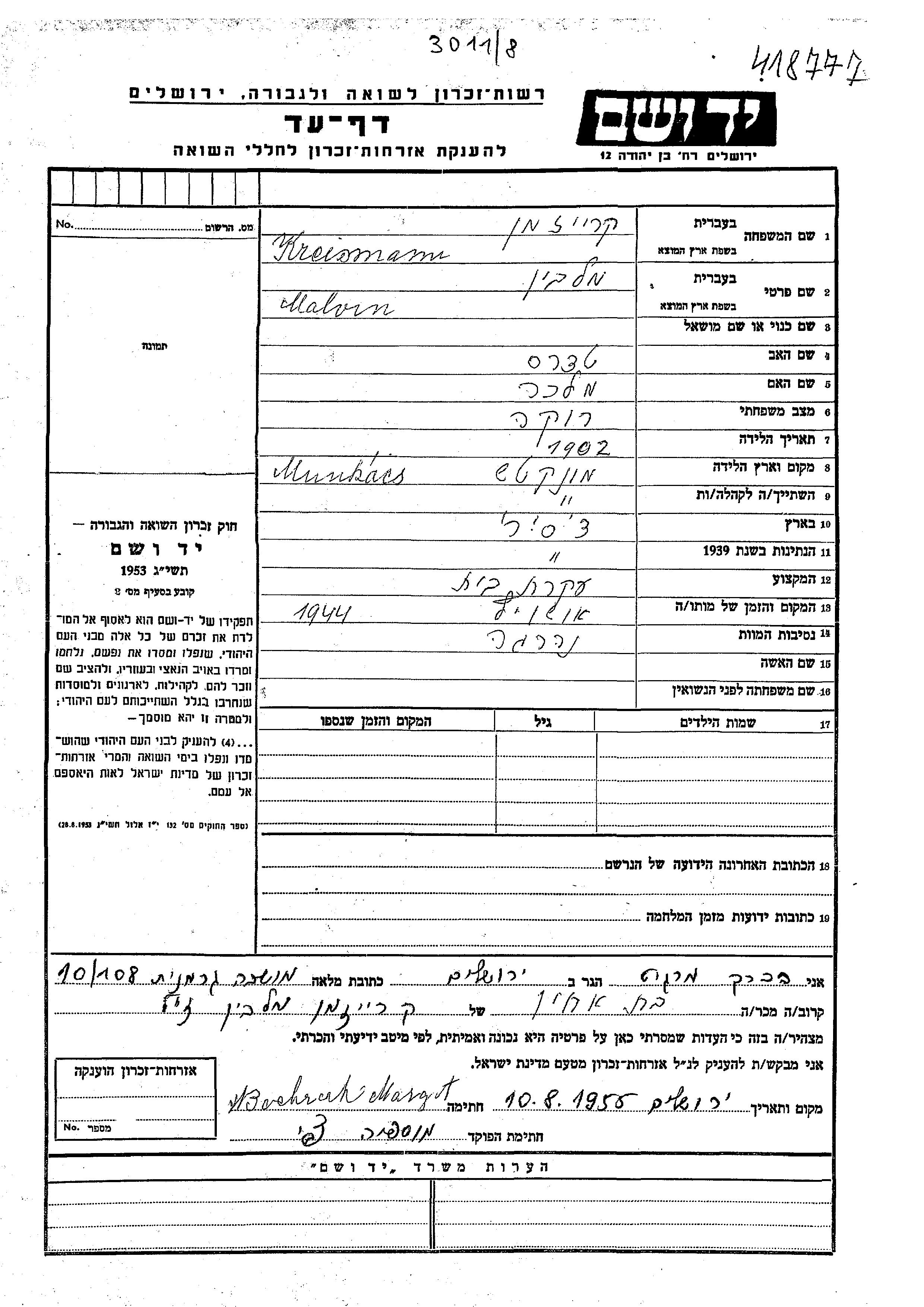 Malvin Malbin wurde in der Schoah ermordet. Todesort: Auschwitz, Polen im Jahr 1944.