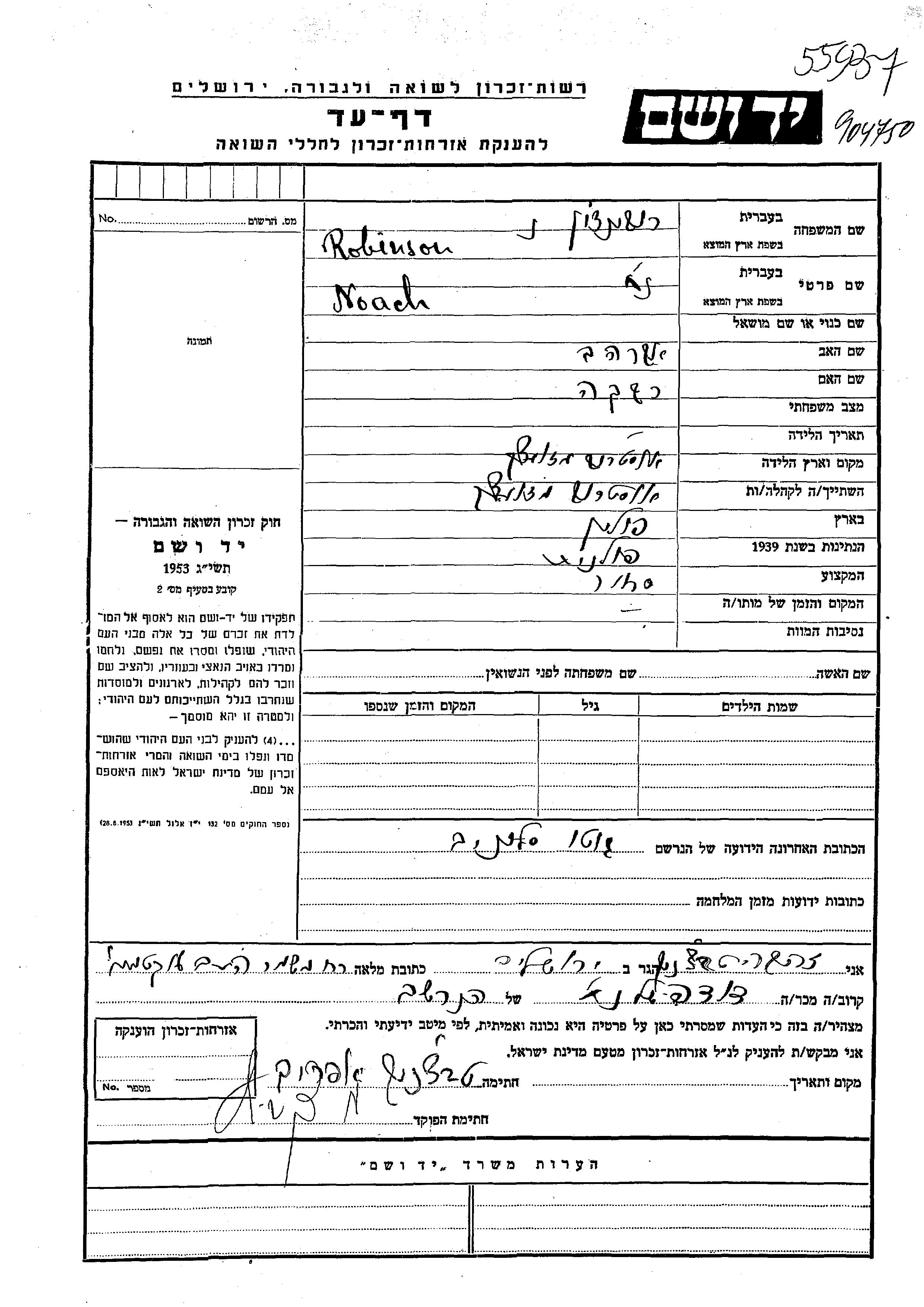 Noach Robinson wurde Er war der Sohn von Avraham und Rivka. Er war Kaufmann/-frau.
