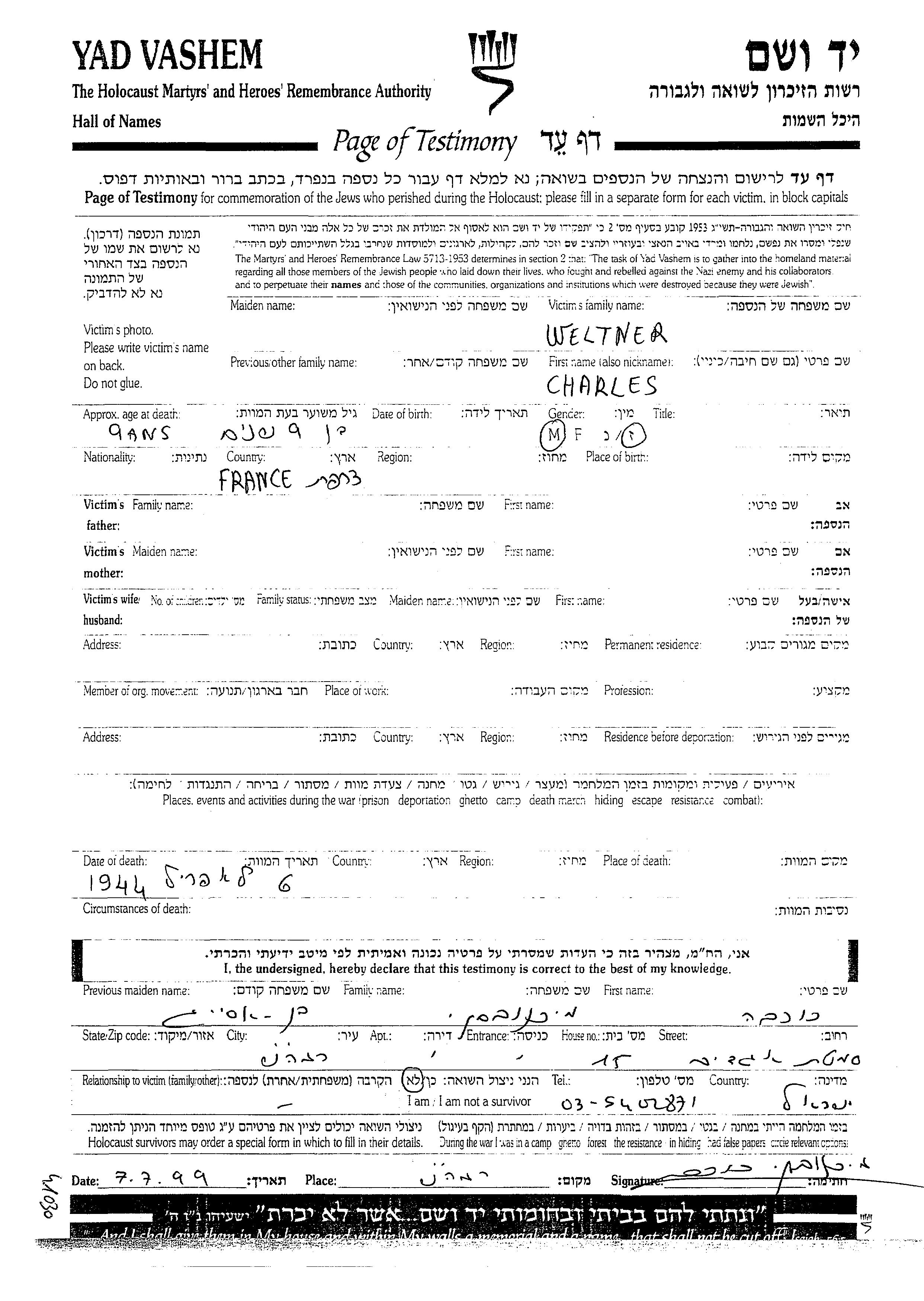 Charles wurde in der Schoah ermordet. Todesort: unbekannter Ort im Jahr 06/04/1944.