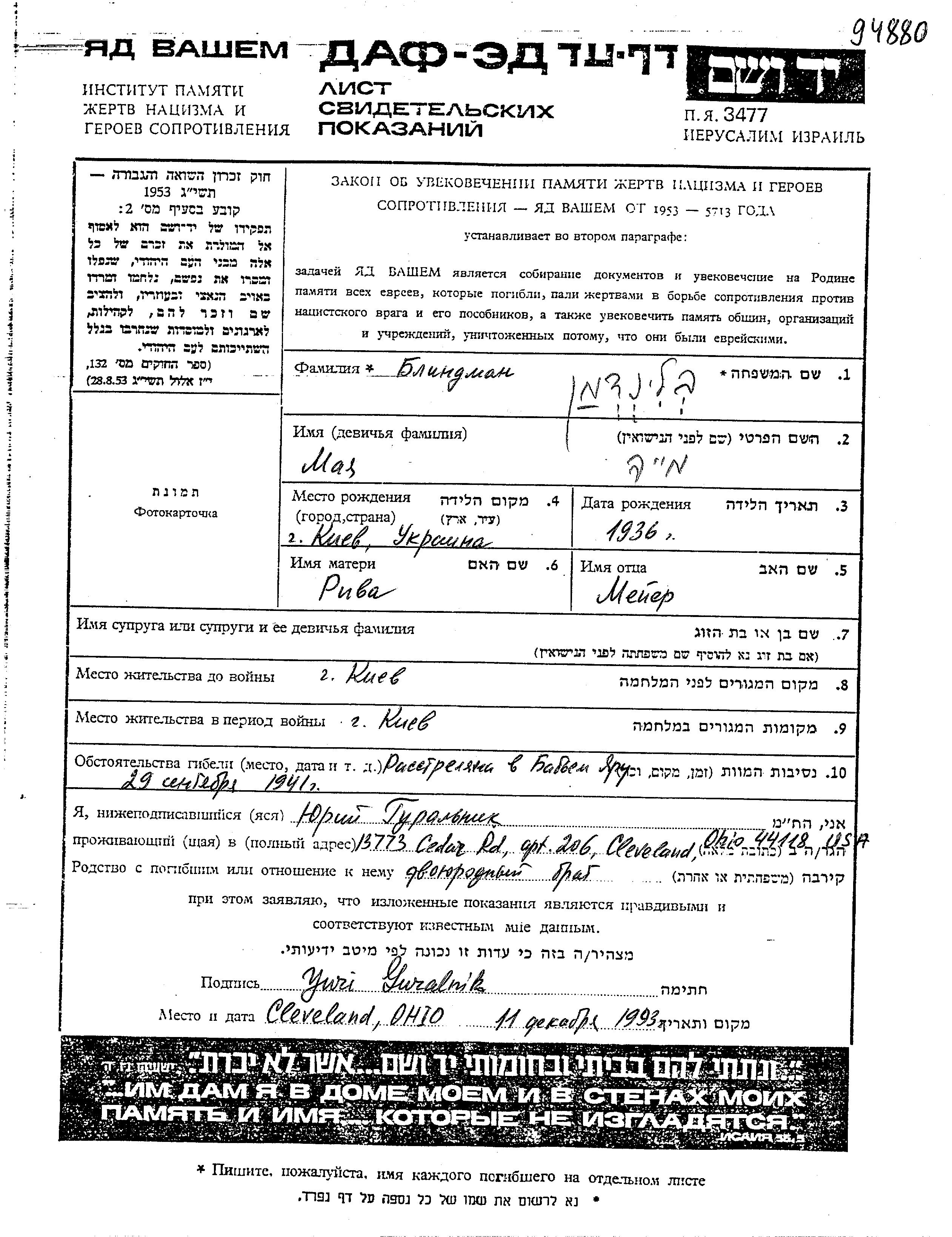 Blindman Maya Kiev, Ukraine (UdSSR) Liste von ermordeten Personen
