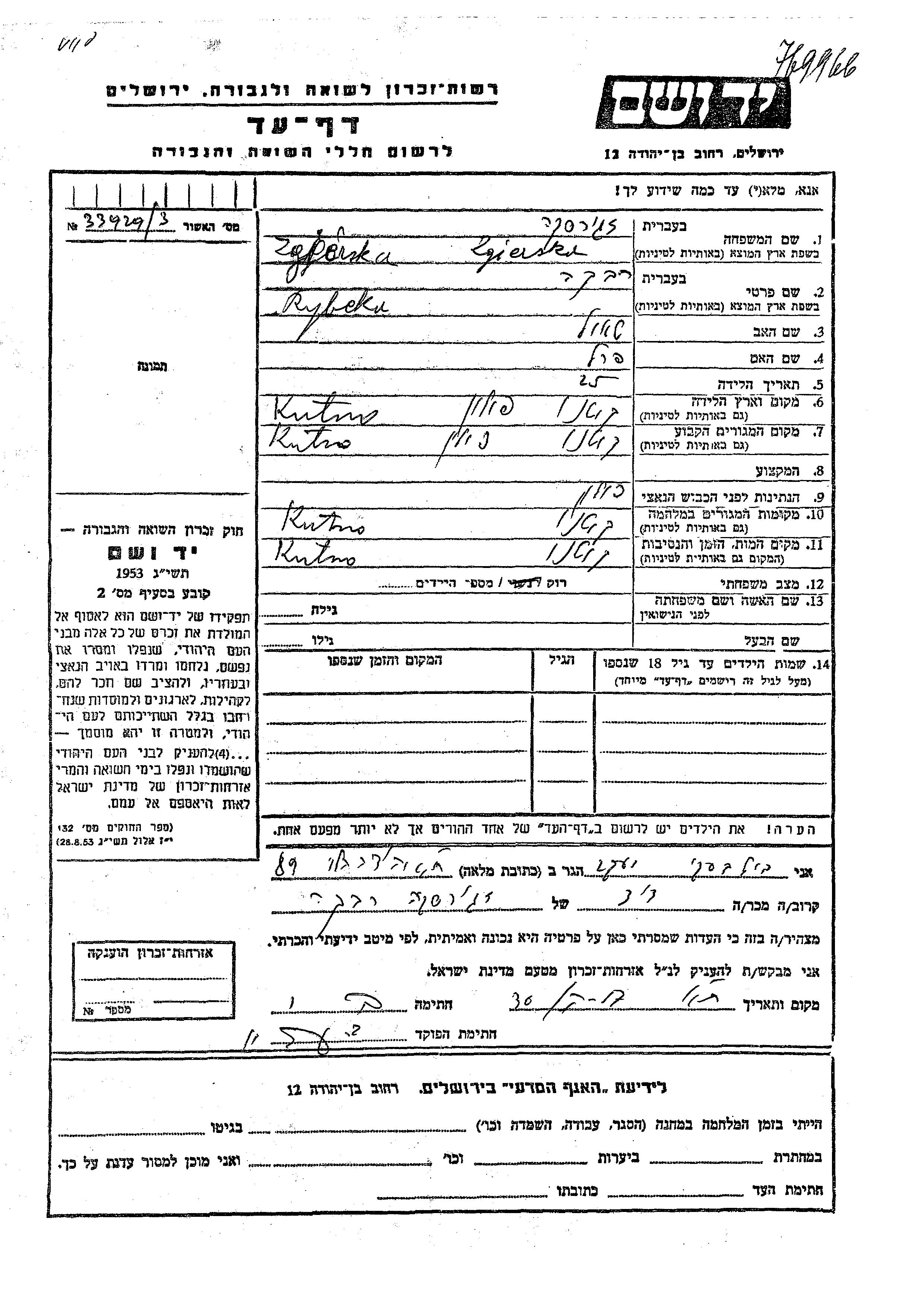 Riwka wurde in der Schoah ermordet. Todesort: Kutno, Polen.