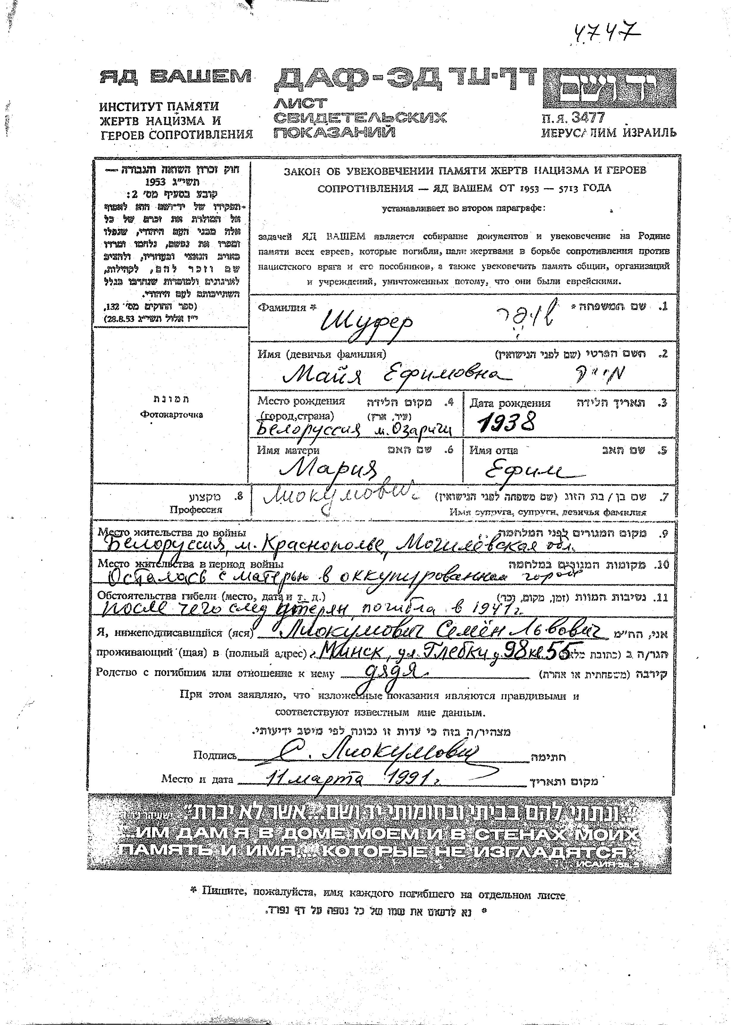 Shufer Maya Krasnopolye, Weißrussland (UdSSR) Verfolgtenliste